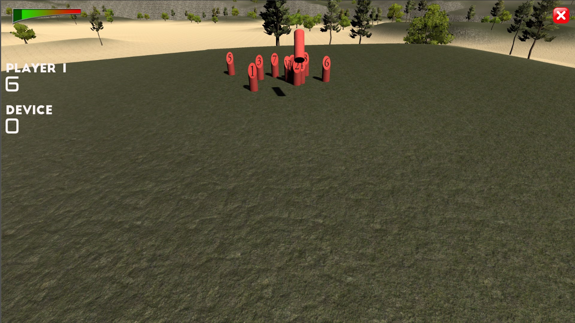 Fallen pins are then raised on their feet, numbered facing the throwing area, right where they are and without lifting them off the ground. Thus the configuration of the playing area changes. Each player takes a turn at throwing and as many turns are taken as necessary.