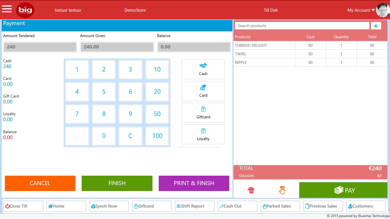 Fully integrated cloud EPOS solution, works online and offline, features includes POS, Inventory & Stock Management, Credit card processing, Gift-cards, Loyalty, CRM, Reports, Multi Branches, Staff Rosters, KPI's, Unlimited products, E-Commerce etc