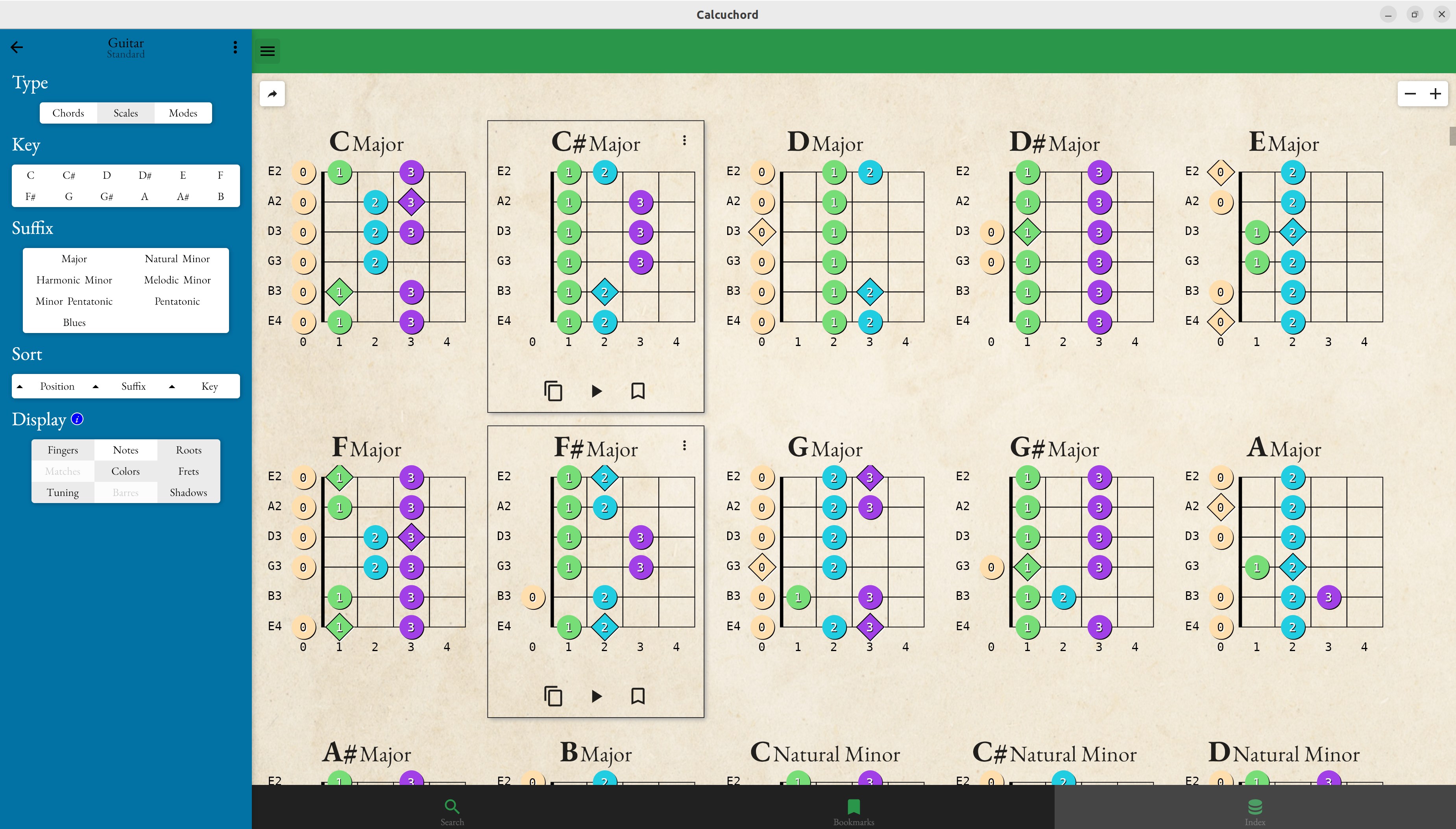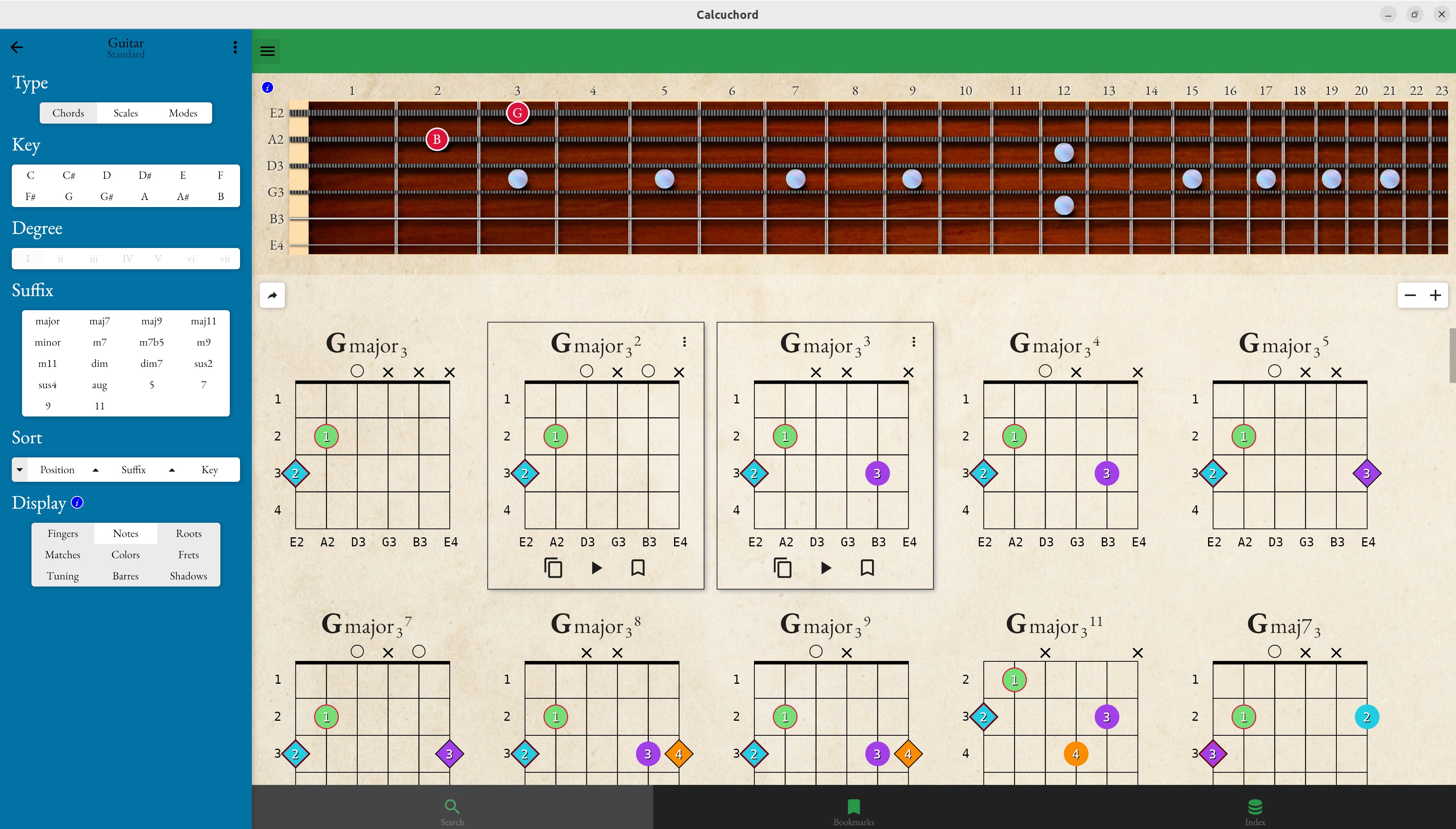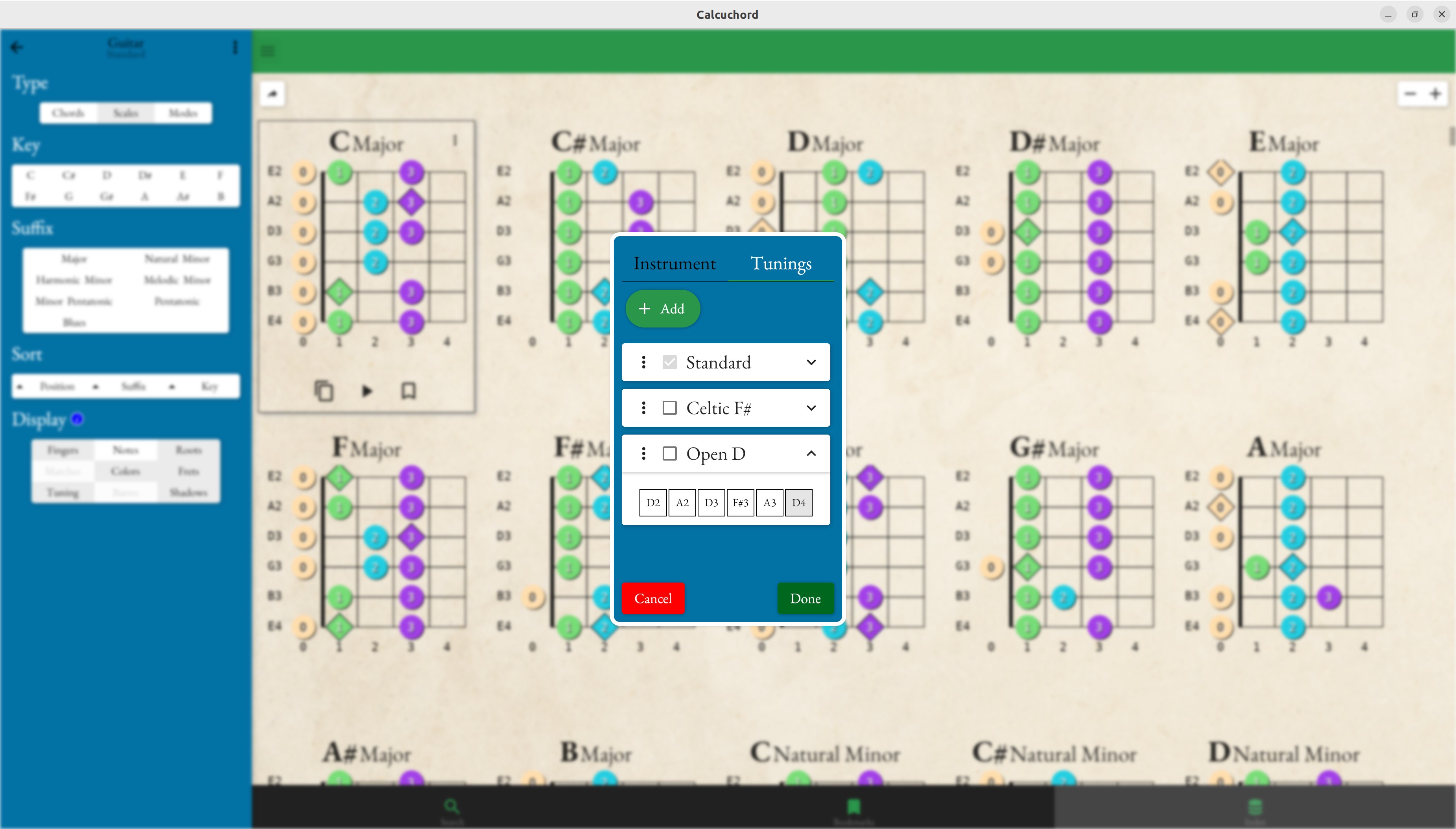 11 built-in tuning templates (guitar, ukulele, piano, bass, violin and more!)create your own instruments and tuningsgenerates 1,000s of chords, scales and mode patternsbookmark your favoritessound preview using midi playbackchord fingering discoveryexport to midi, pdf and htmltranslate any pattern to any other tuning or instrument