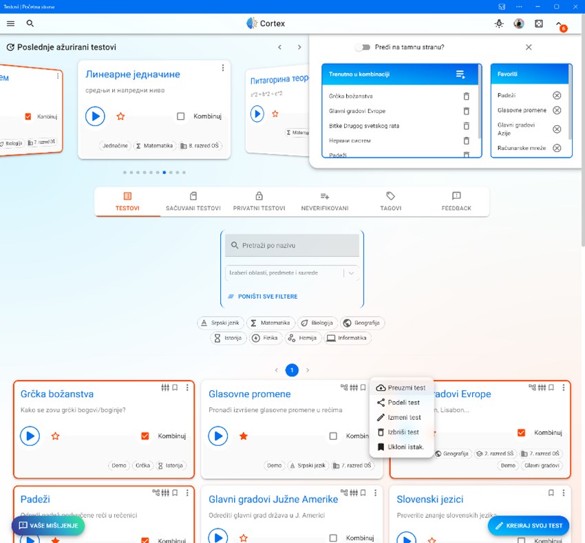 Projekat Cortex je nastao sa misijom da bude najbolja moderna platforma za kreiranje, rešavanje, deljenje i pronalazak testova.