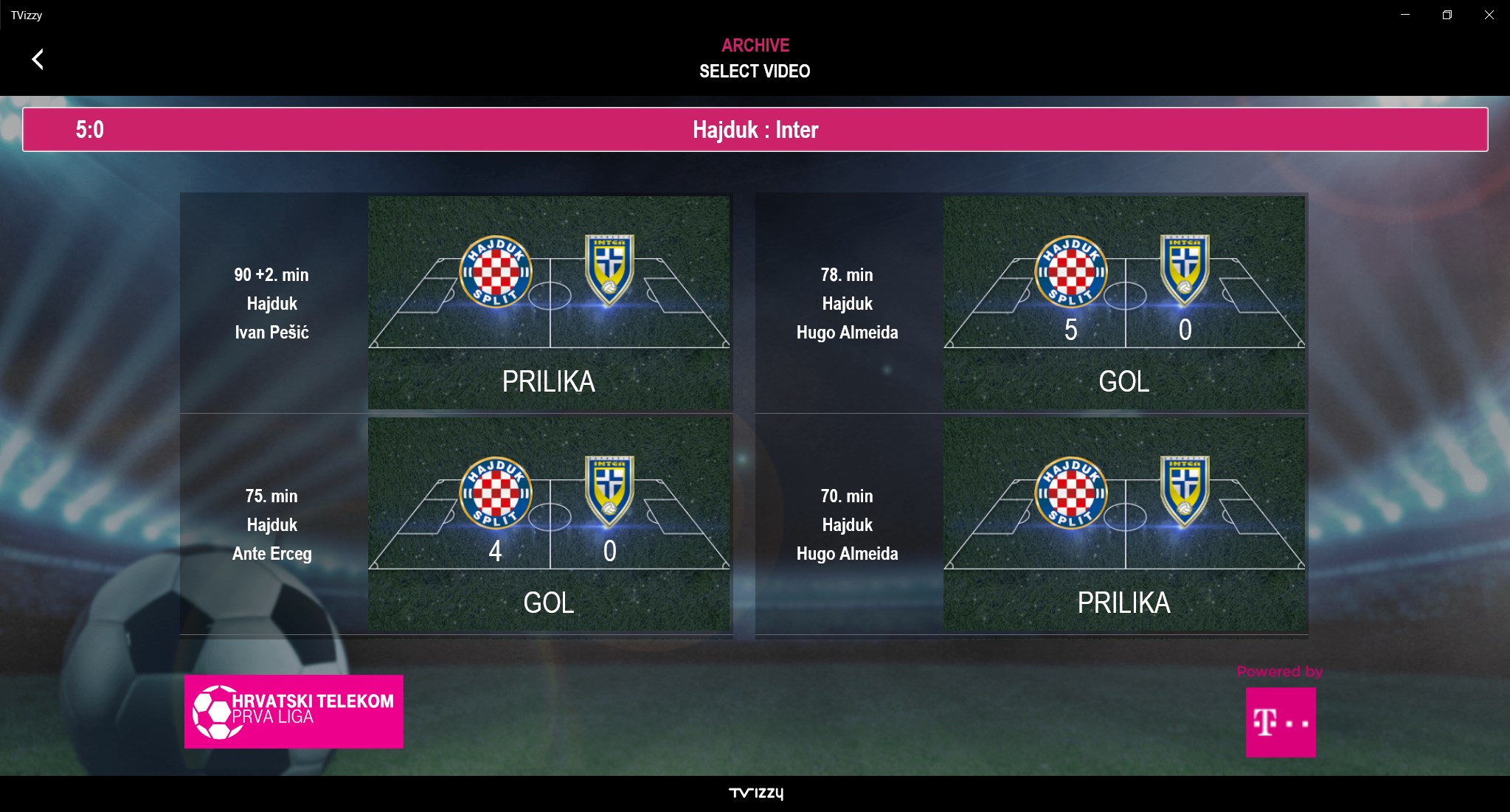 TVizzy application for push video notification of sport footage which provides the videos of goals and highlights of your favorite sport clubs right to your smartphone as soon as they happen and no meter wherever you are.