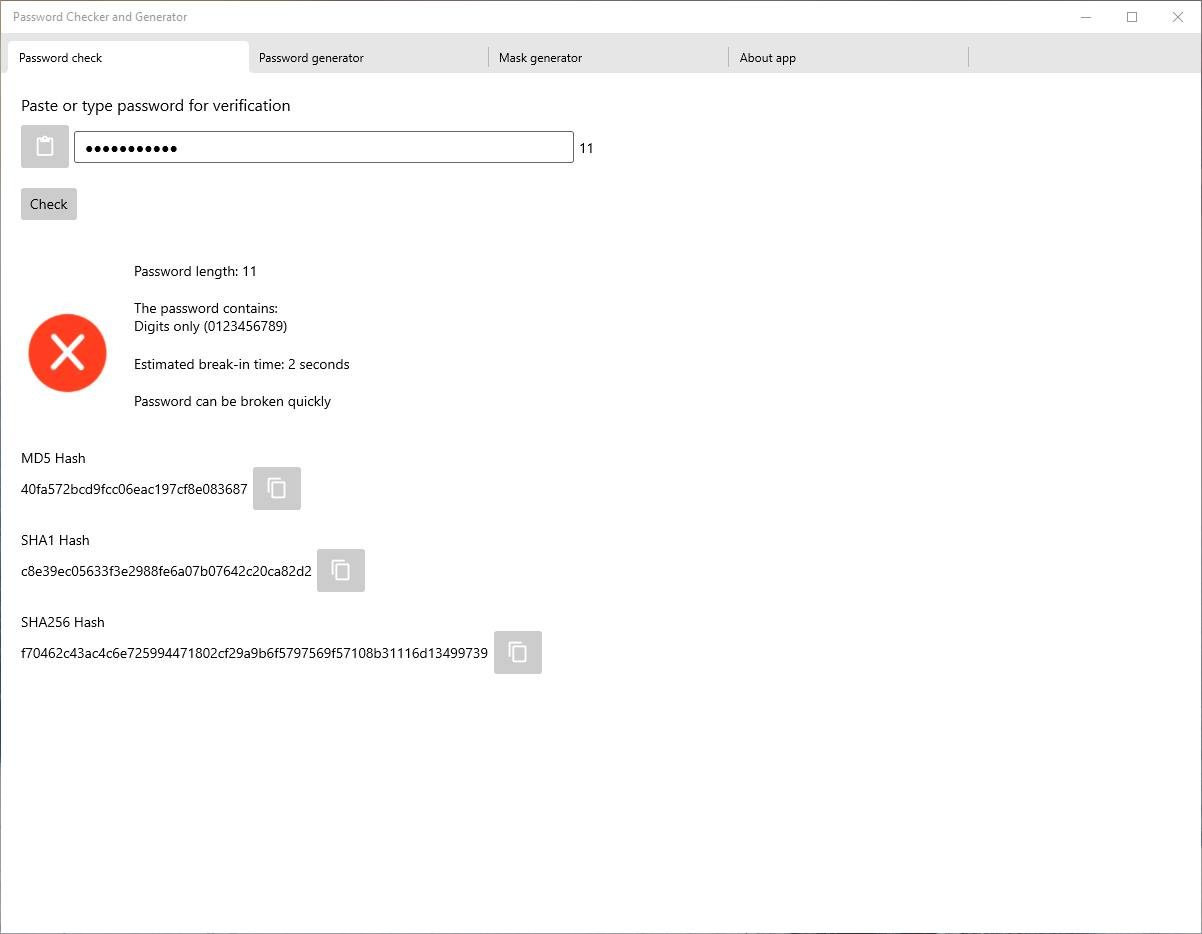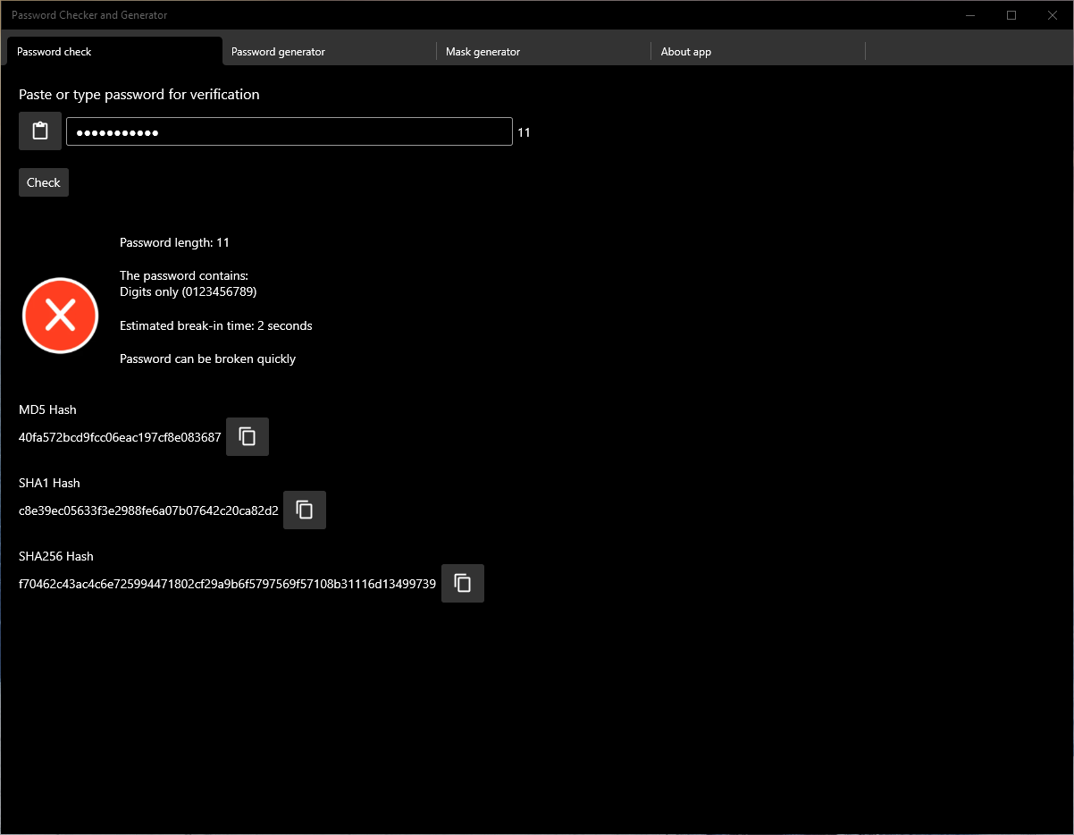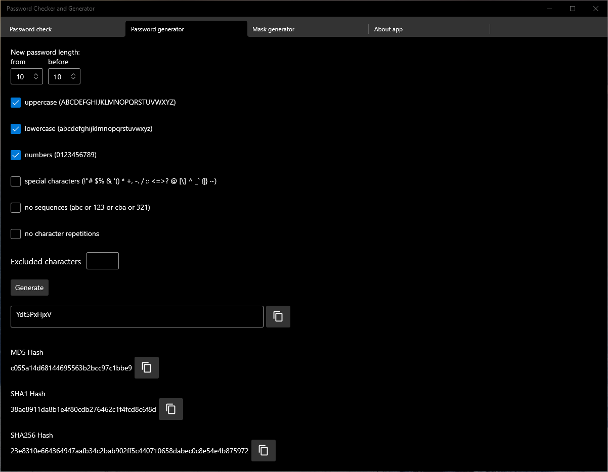 Calculating hashes (MD5, SHA1, SHA256) for the new password.
