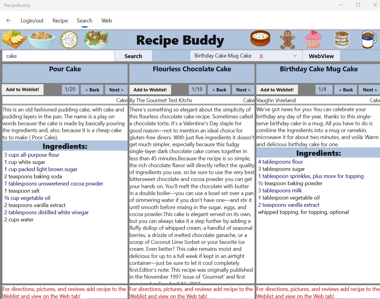 RecipeBuddy V2 is the same search and storage of recipes as with V1 made similar and hopefully more robust. The recipes that are found, altered, or created entirely from scratch are saved in a simple SQLite database on the users computer. The RecipeBuddy doesn't track or send data to any other service.