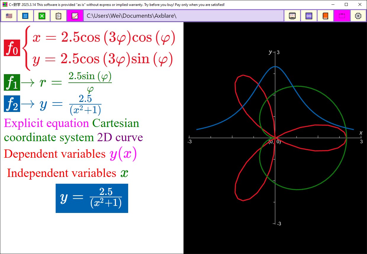 Display math formulas and calculation steps; Plot graphs of explicit and parametric equations;