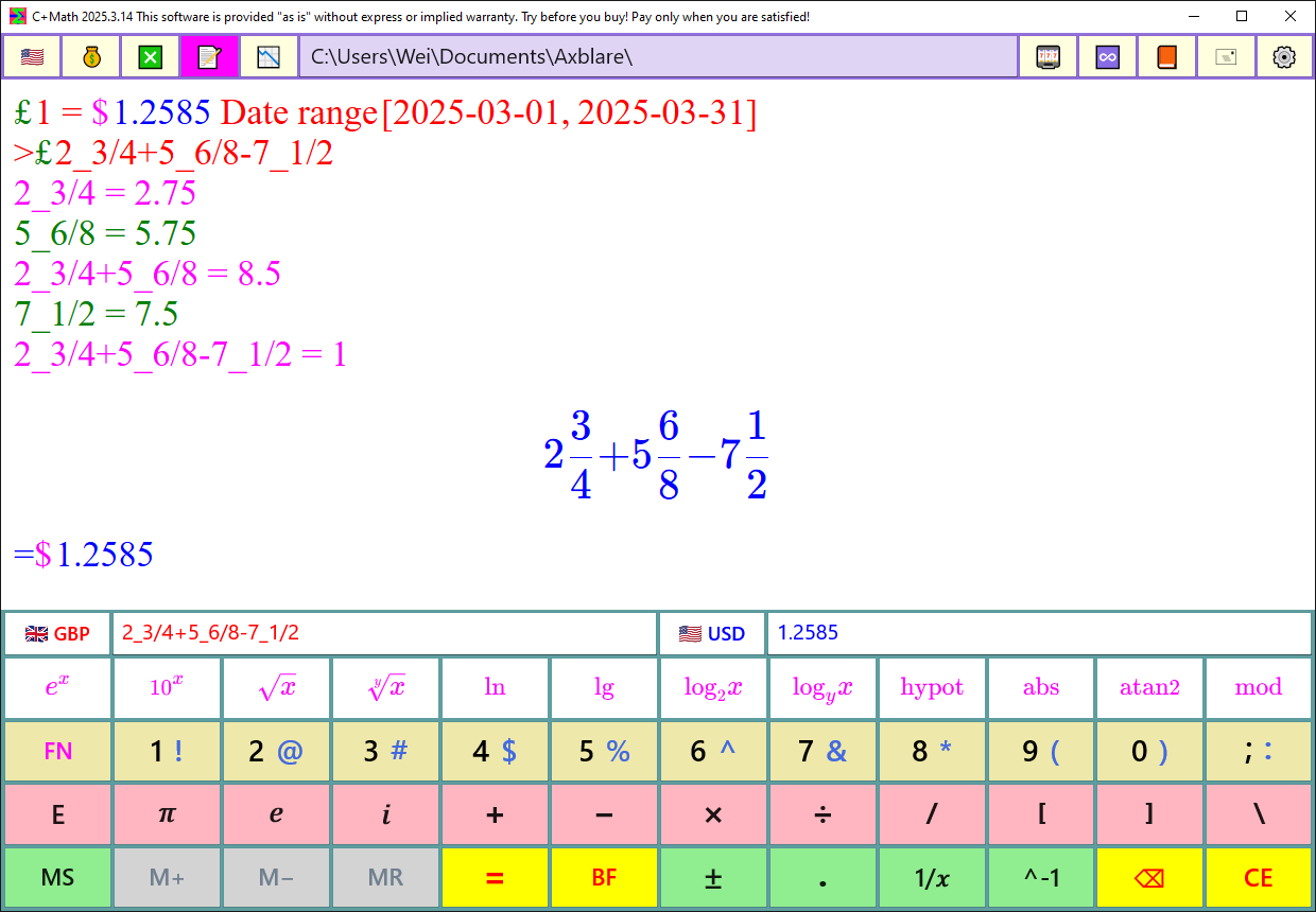 Support decimal point and decimal comma; Adjustable math precision and numeric output formats;