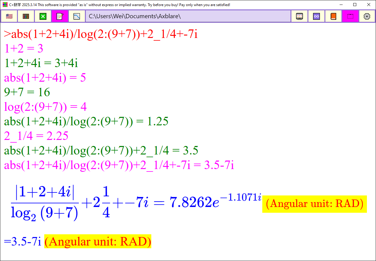 Scientific calculator for complex numbers