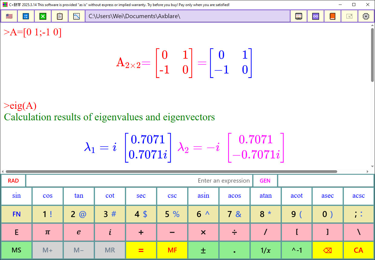 Compute eigenvalues and eigenvectors of square matrices with real numbers and complex numbers;