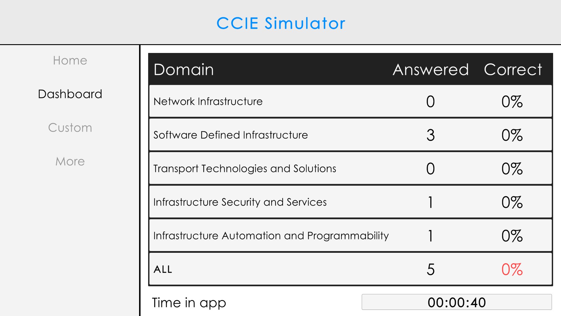 Track your progress including which domains you need to focus on, how many mock exams you've passed or failed, your total study time and much more.