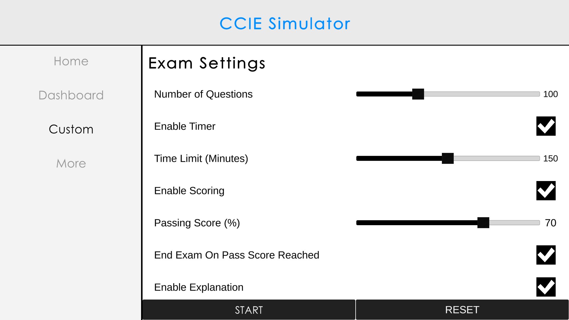 This feature allows you to create your own exam with your own rules.