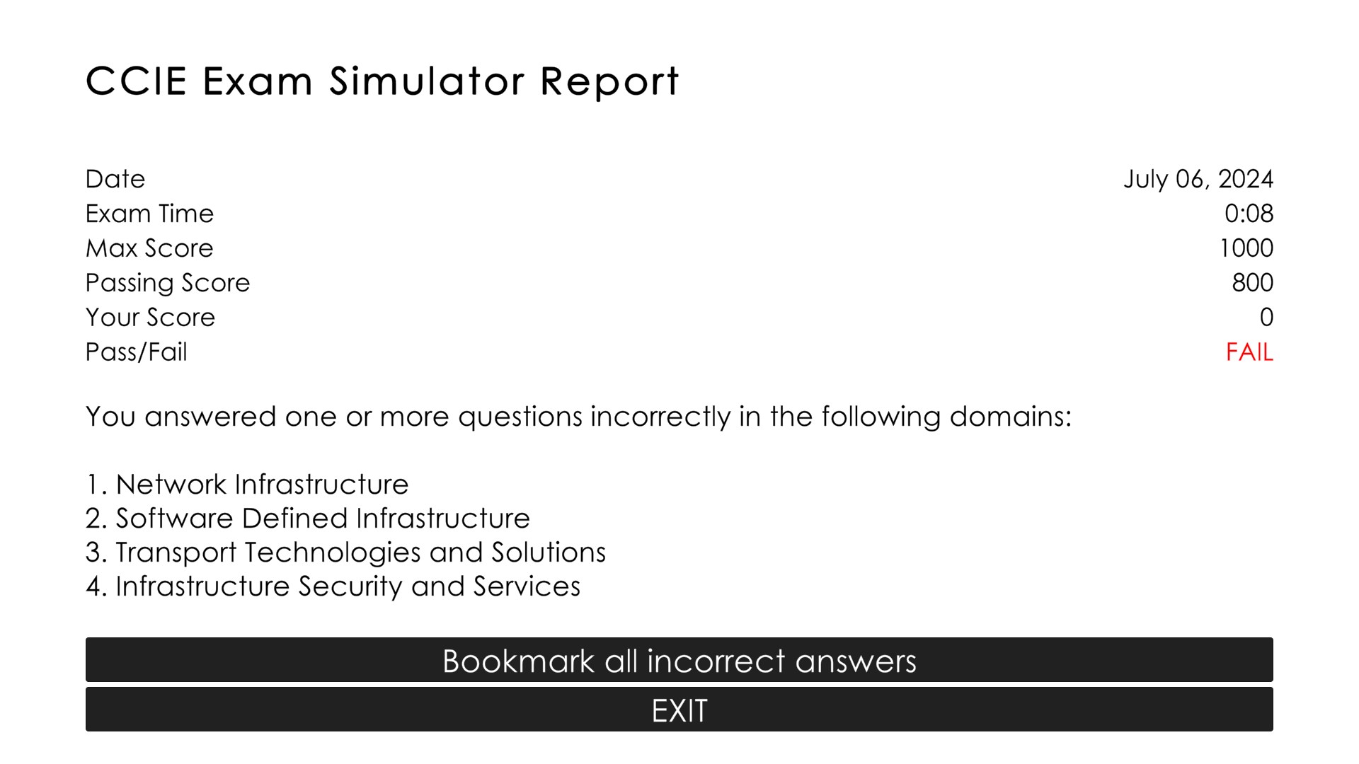 The simulator mode is created to replicate the actual exam rules to help you go through a mock exam prior to your actual exam.