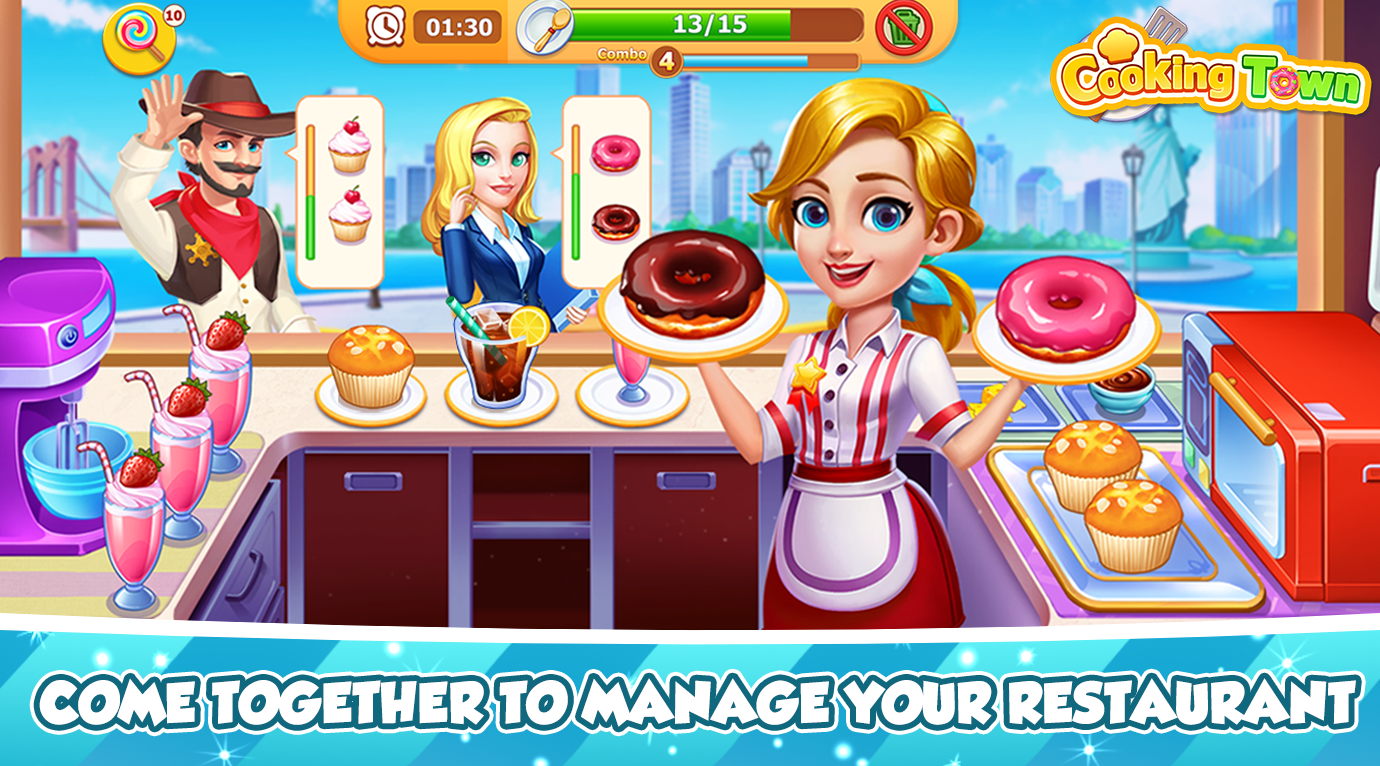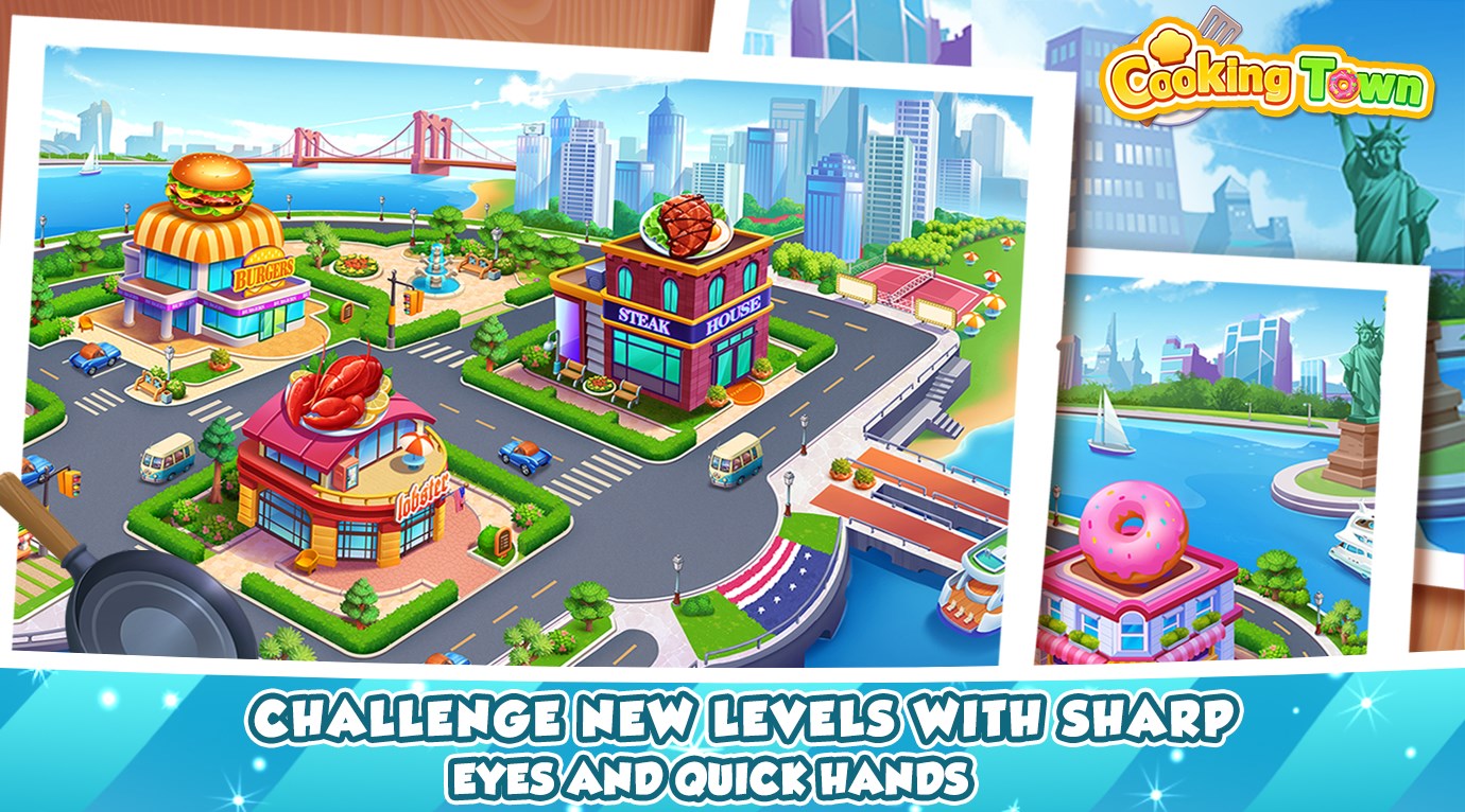 Cooking Town co-published by MIRACLE GAMES INC, is a time-management casual game centered around food. In the game, the player will become a passionate gourmet and embark on a journey to explore the world's cuisine. From a traditional home kitchen to a busy and luxurious star restaurant, you will personally prepare delicious dishes from all over the world. Through careful cooking and creative collocation, mouth-watering new dishes are created to satisfy customers' various tastes.
