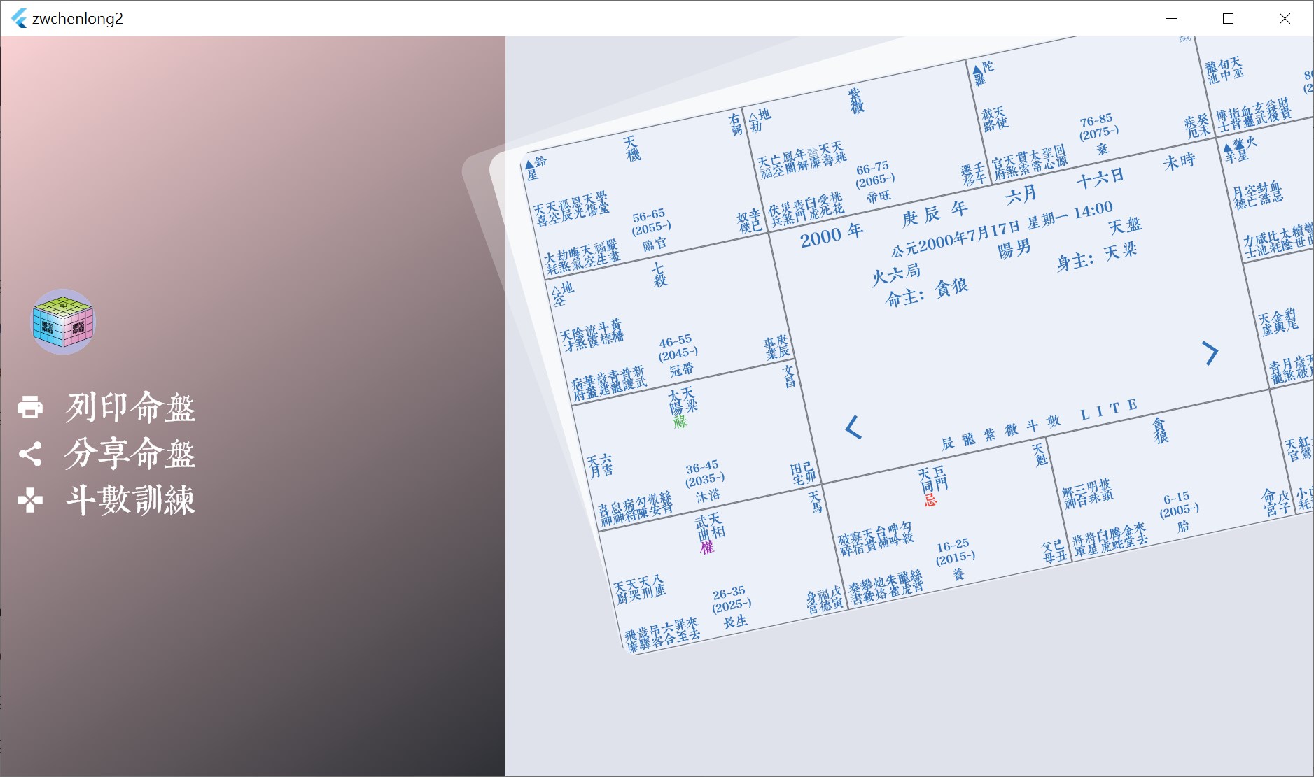 新舊曆轉換(公元1501-2200)列印 / 分享(PDF)命盤附設「人事十二宮定位訓練」及「四化定位訓練」小遊戲,寓娛樂於訓練,全面鞏固斗數基礎!