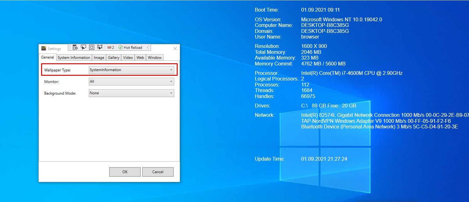 Set image, video, or image gallery as wallpaperShow system informationf nessesary, a user can customize font, text color, transparency, alignment and refresh time.