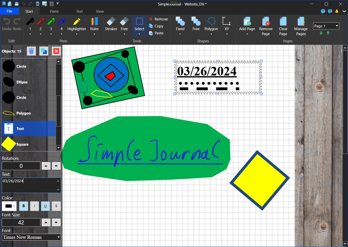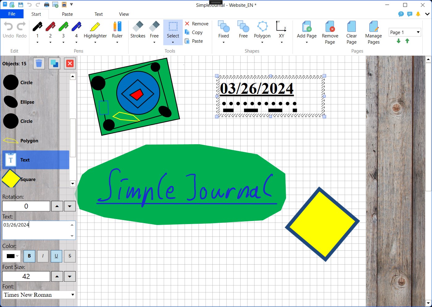 SimpleJournal is a simple program for Windows for drawing and writing with tablets, convertibles or with the mouse. A journal can consist of several pages, where the pages are in A4 format and there are lined, checked and blank pages.