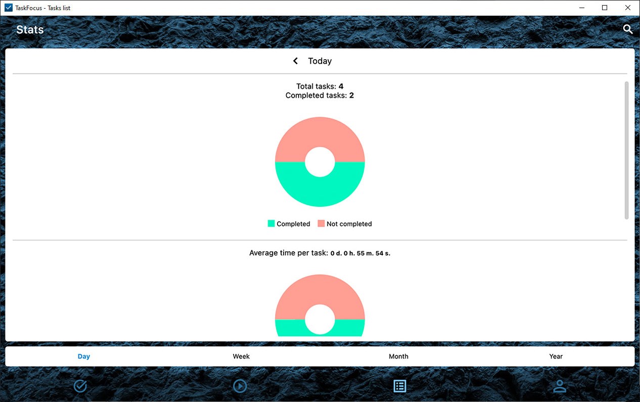 TaskFocus allows you to easily and conveniently focus on tasks and activities, while also keeping track of the time spent on them.