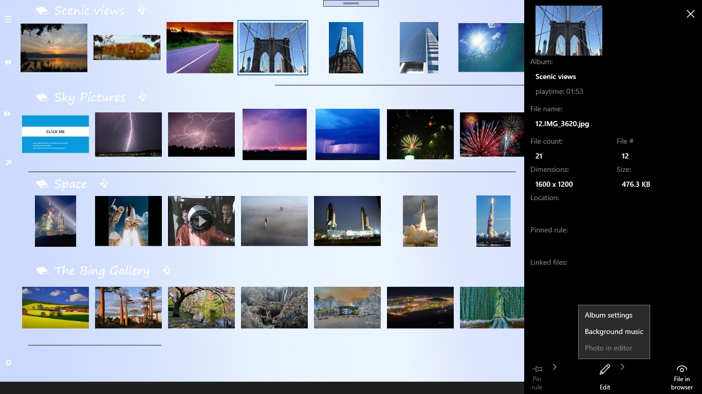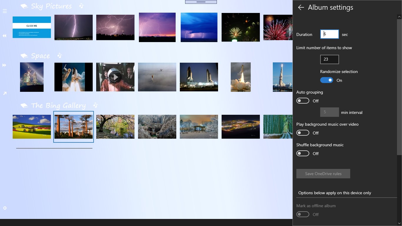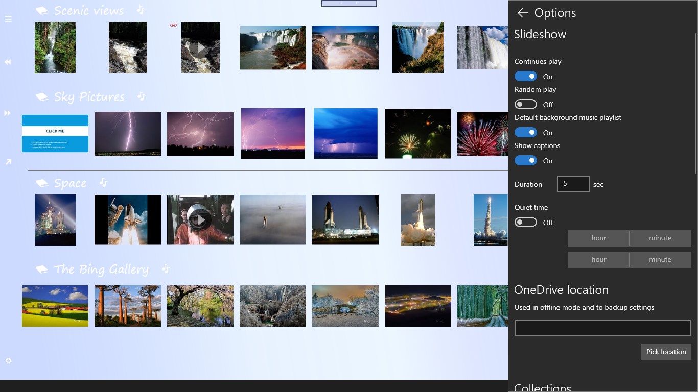 Sometimes it’s hard to pick the best picture to put in a frame or share with friends and family, and you don’t want to delete any of them and lose access to those precious memories. The Memory quilt app solves this problem! It automatically groups photos in albums and randomly picks one in each group to present in your slideshow. This app allows you to view pictures on OneDrive without digging through folders. It helps you create an instant multimedia slideshow from any folder with background music.
