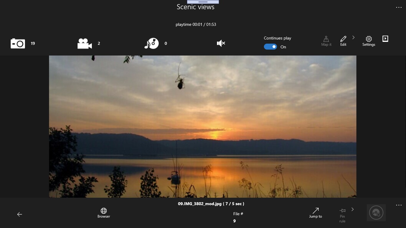 Simple and intuitive interface that enhances your navigation and viewing experienceTo create a show for a special occasion, select tags and add music, no need to create a folder with a collection of photosAuto grouping – groups photos in albums and randomly picks one in each group, which makes your slideshow \“short and sweet\” if necessary, without losing the storylineMap it – to show on map where the picture was taken or build a route of an albumIn offline mode, the app will play albums available offline on your deviceSensors can be set up to trigger a pre-defined set of slides to showPin music or background sound to a specific pictureBackground music editorImport from WhatsApp chat