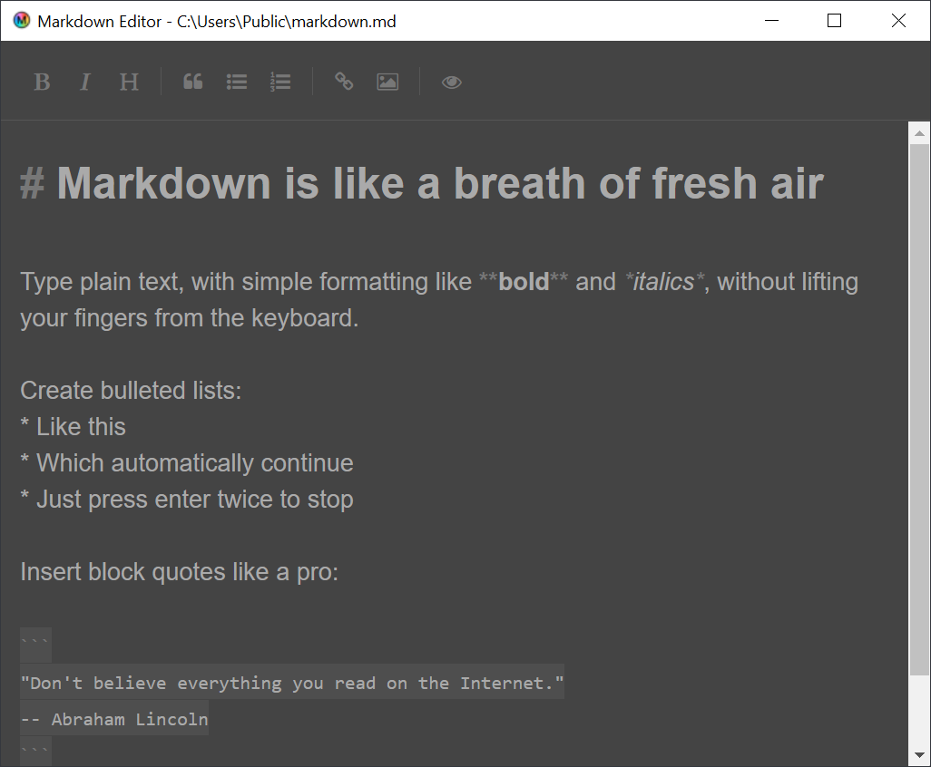 A simple markdown editor that does exactly what you need. Nothing more, nothing less.