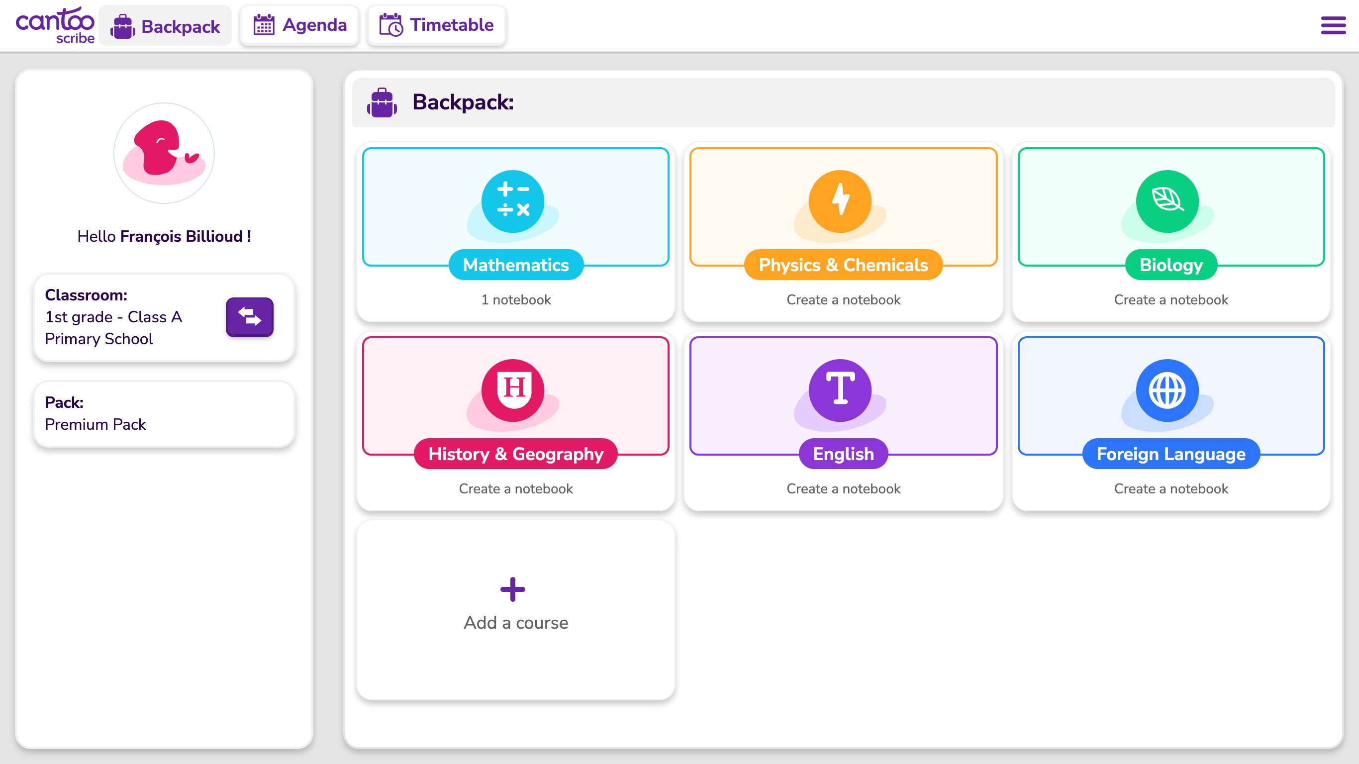 Throughout the school life, students evolve, and they can benefit from the tools designed for each level. From elementary to high school, Cantoo Scribe adapts to meet the new needs of each student and the new subjects taught. In their daily life throughout the year, the student can switch from one subject to another with a single click, while ensuring that the notebook will reopen just the way it was before closing.