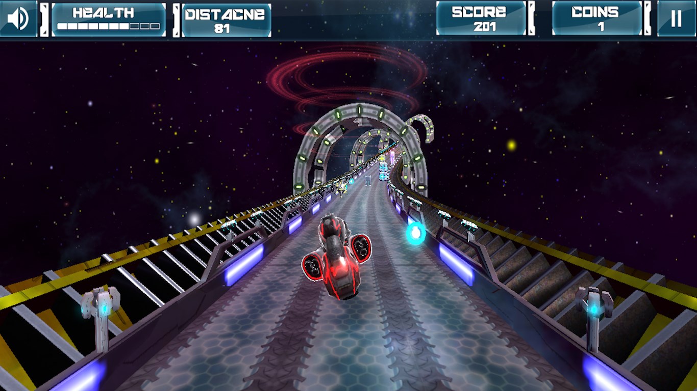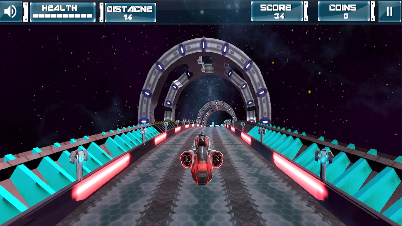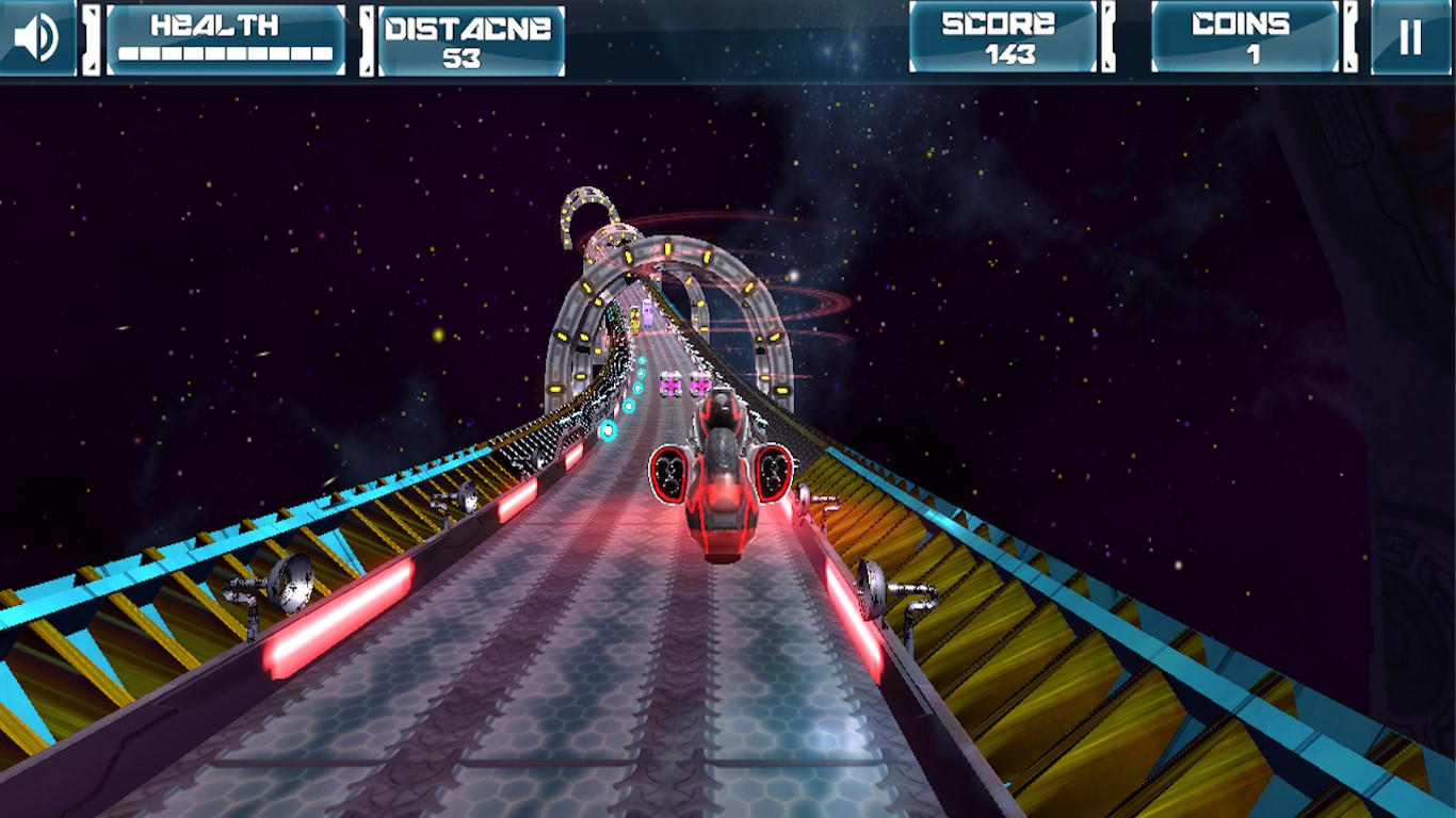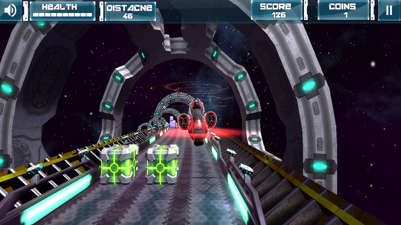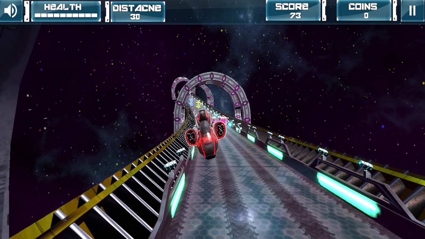 Run over 60 different levels with power ups, and 3 different ships. Earn coins and unlock different powers to your ship.