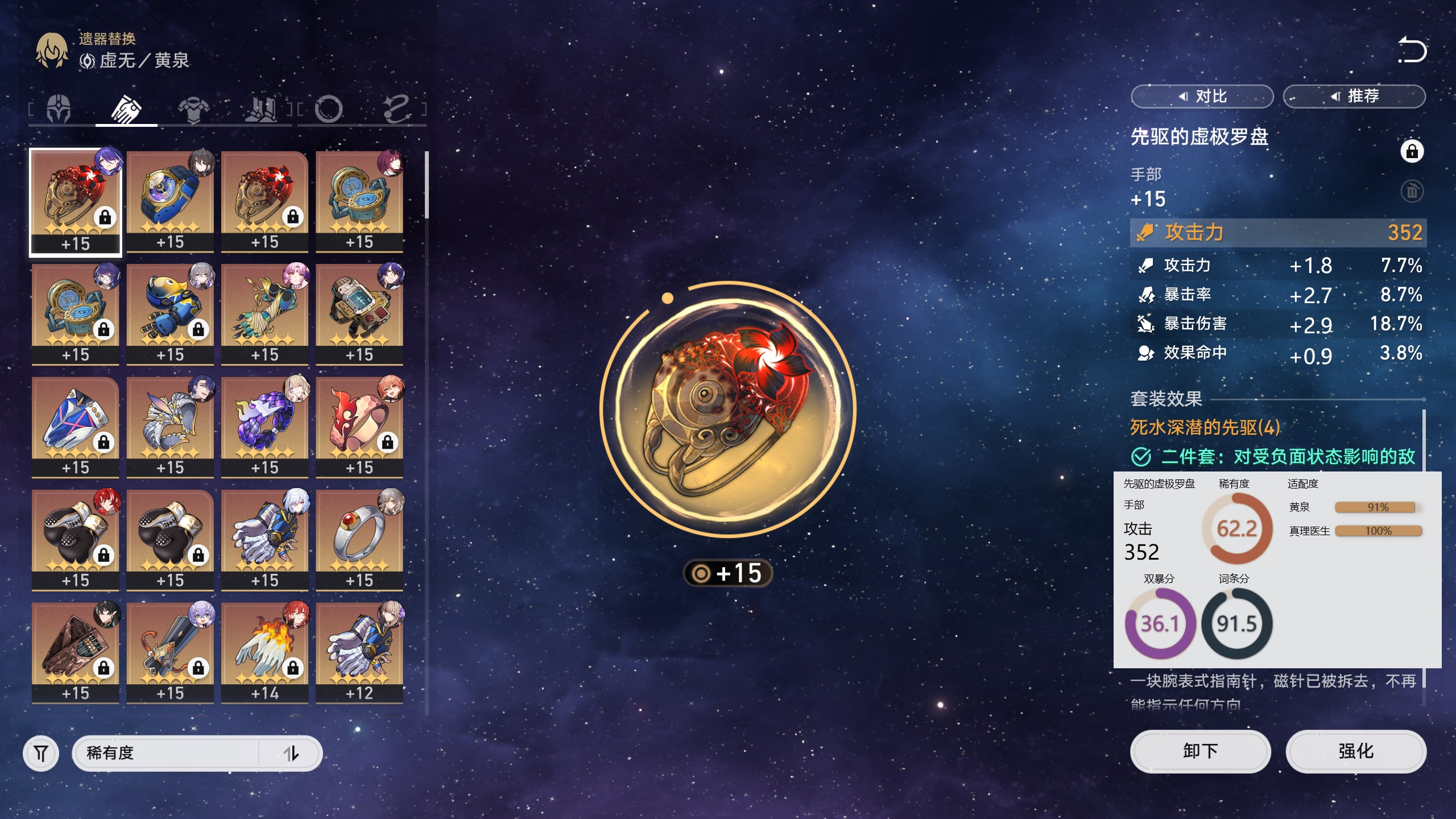 Compatibility: Evaluates whether this relic is suitable for the character, with a maximum of 100% (this can be understood as "usefulness").