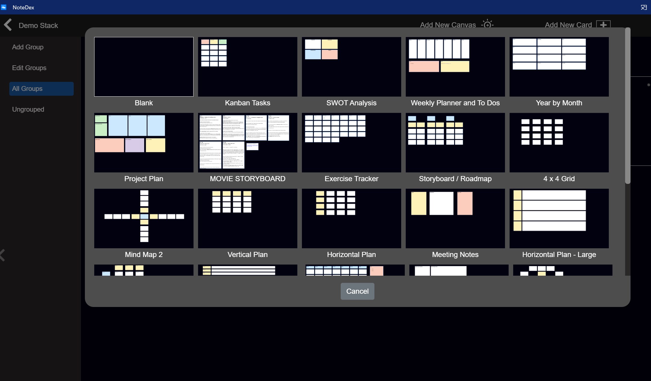February 2025: New Canvas and Card Templates - Jump start your Creativity! Create Storyboards, Project Plans, Kanban Task Trackers, SWOT Analysis, Weekly Planners, Exercise and Habit Trackers, Meeting Notes and Brainstorm Mind Maps, Lean Canvas, Priority Matrix and more!