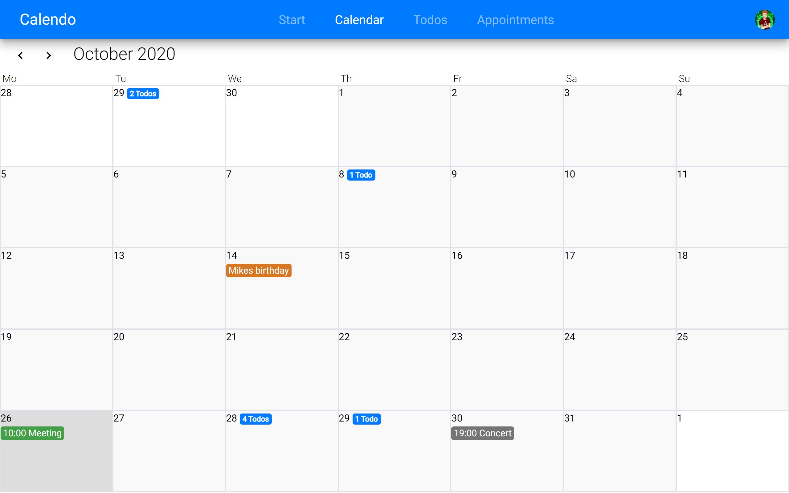 You can also see all your todos and appointments in the calendar.