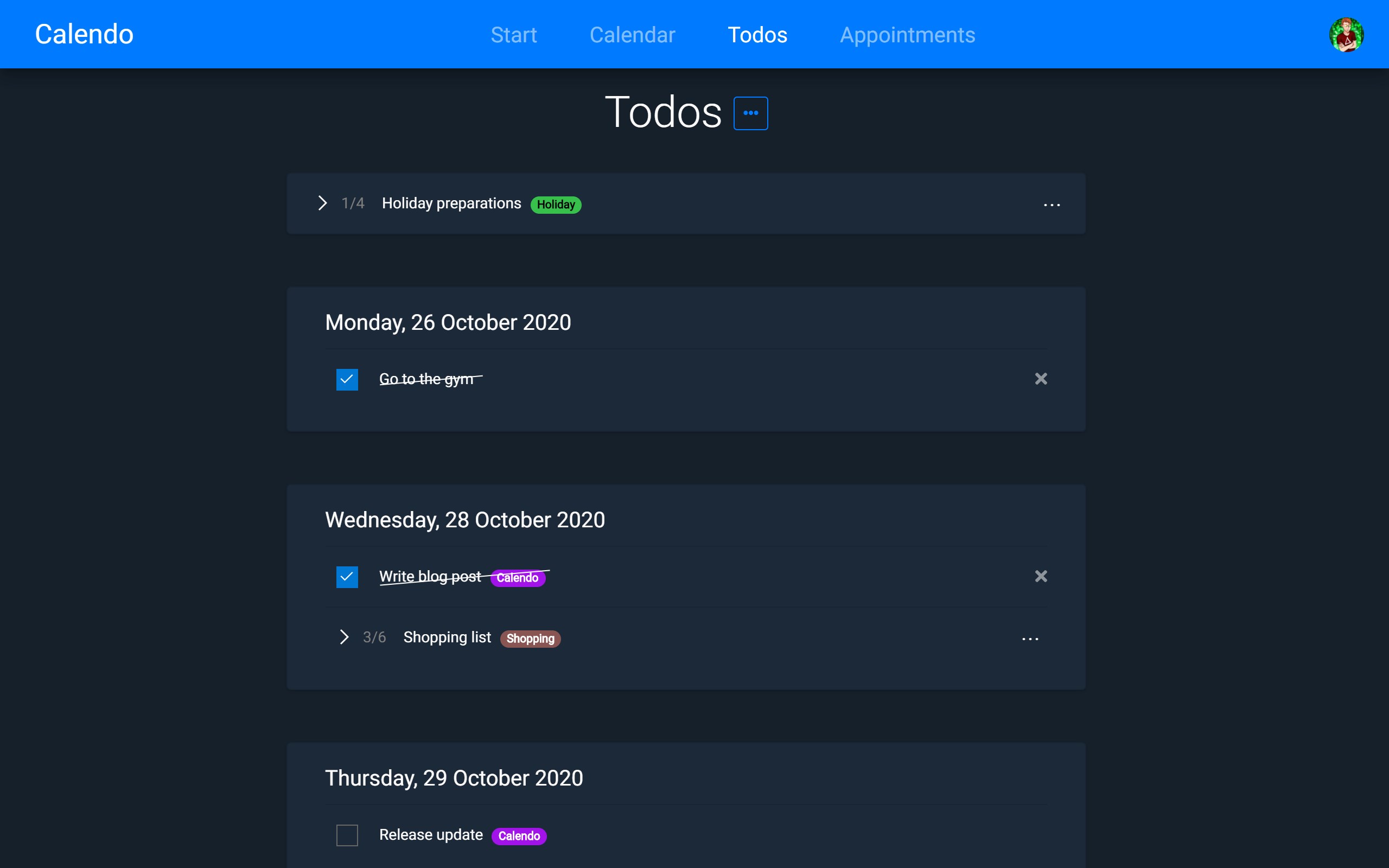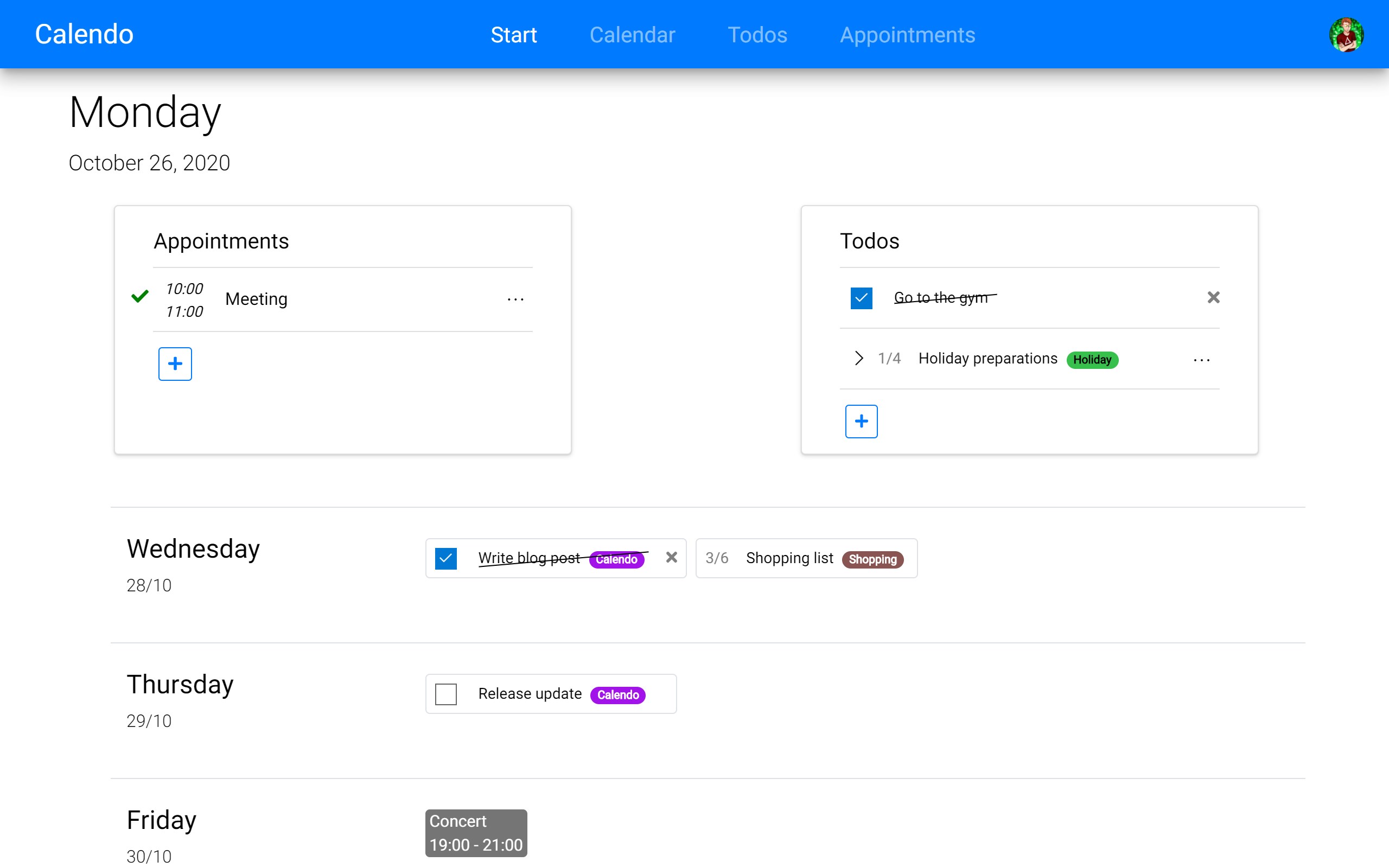 Calendo is a simple tool for managing your todos and appointments.