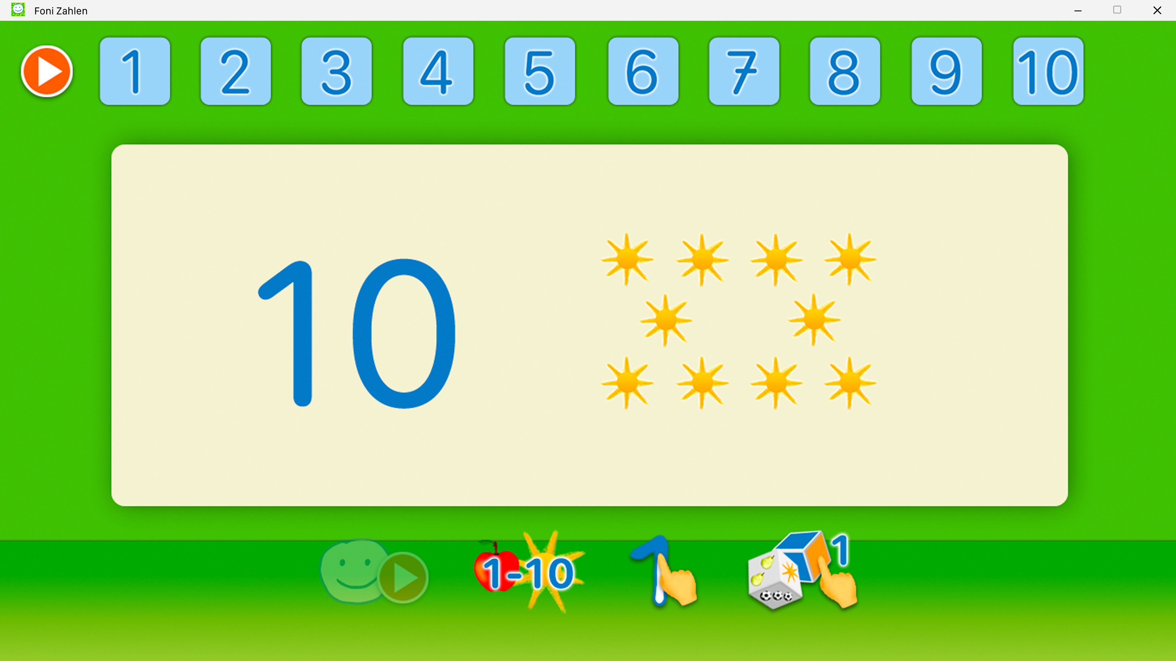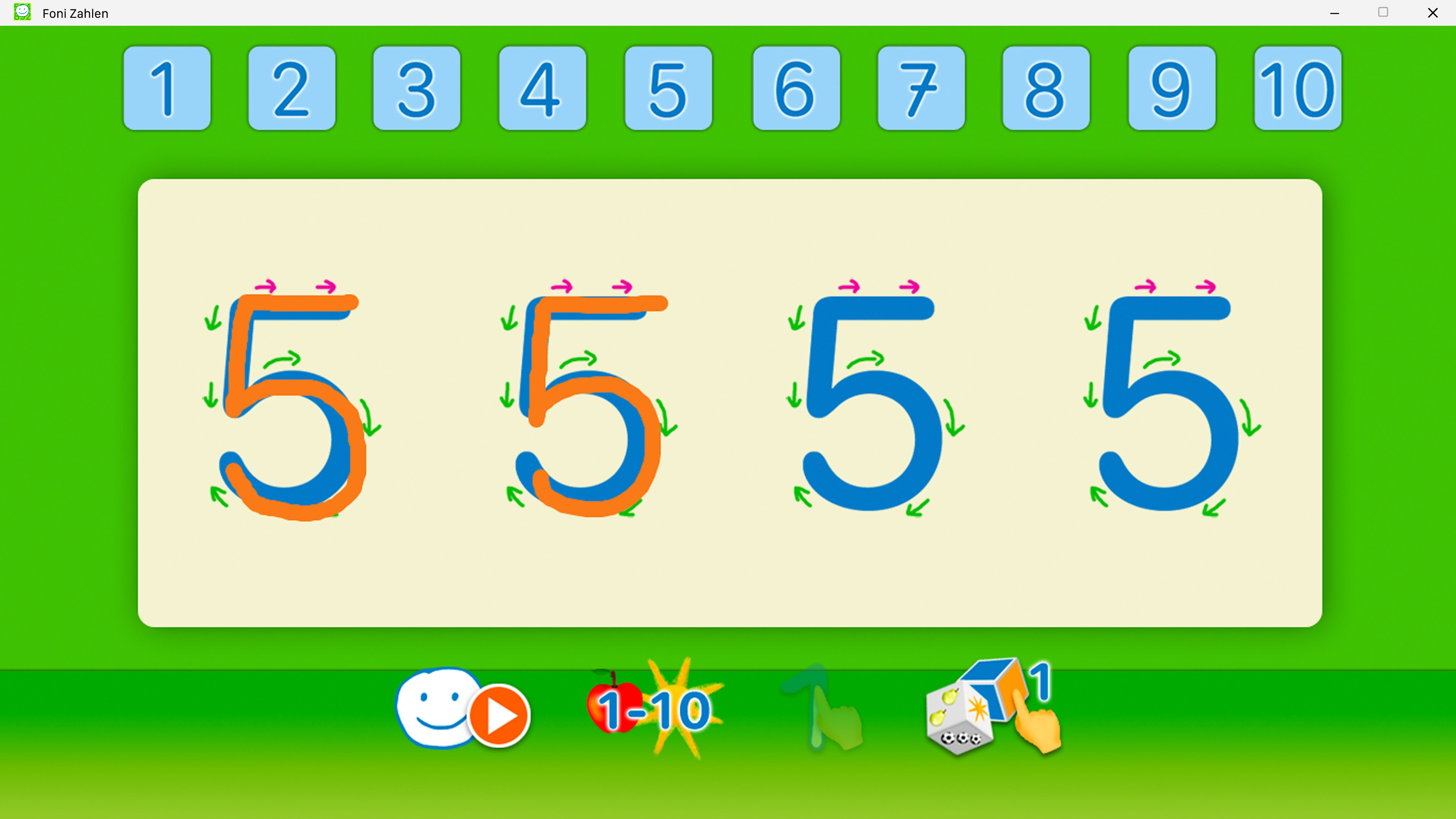 Foni ZahlenDer Zahlenraum 1 bis 10 wird erlernt Zuordnen von Zahlen und MengenNachmalen der Zahlen eins bis zehn Rückmeldungen erfolgen sofortDie Foni Zahlen App bindet die visuellen, auditiven und haptischen Kanäle ein