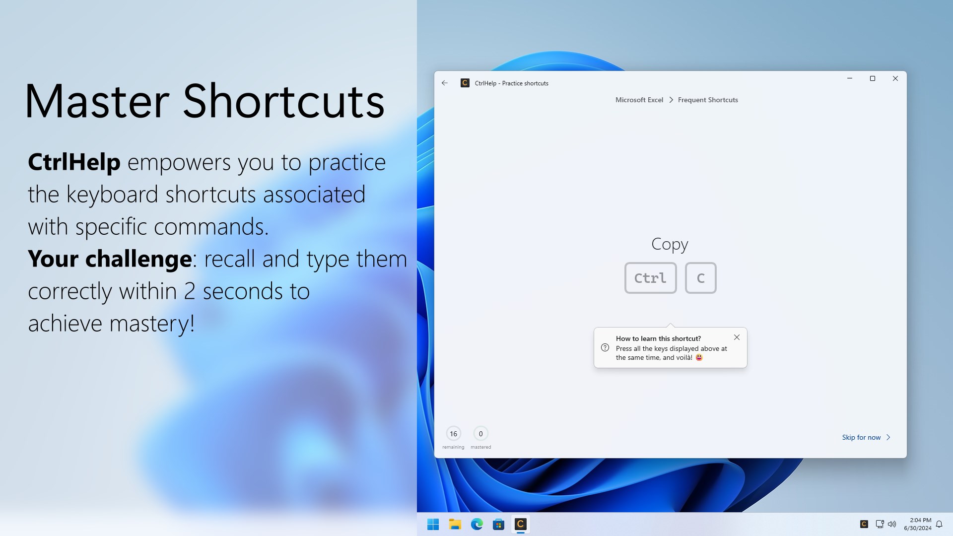 Are you tired of navigating through menus and making countless mouse clicks? Say hello to CtrlHelp, your ultimate shortcut companion! Whether you're a productivity guru, a gamer, a computer novice, or someone with vision impairment, CtrlHelp empowers you to master over 80 application shortcuts effortlessly. Inspired by the gamified approach of language learning apps, CtrlHelp offers a unique experience tailored to keyboard shortcuts. Here's why you'll love it: