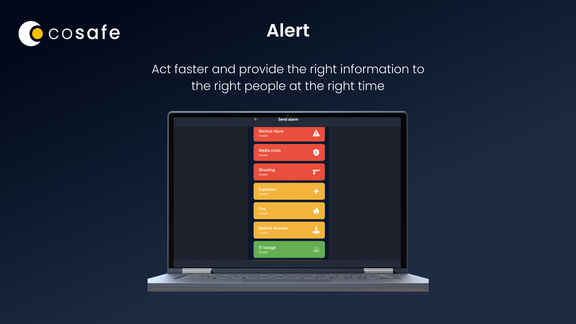 Introducing Cosafe Desktop App, designed by crisis management experts and customized for building safe, resilient and sustainable organizations. The Desktop App is a powerful and user-friendly critical communication platform for alerting, managing and preventing incidents.