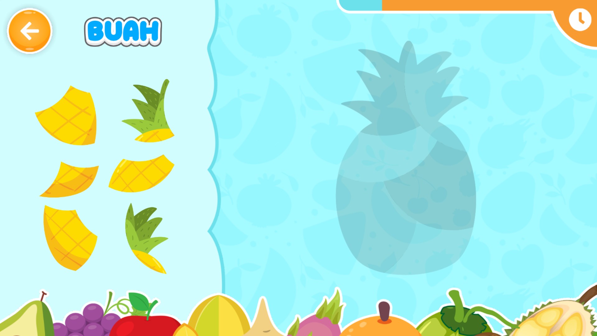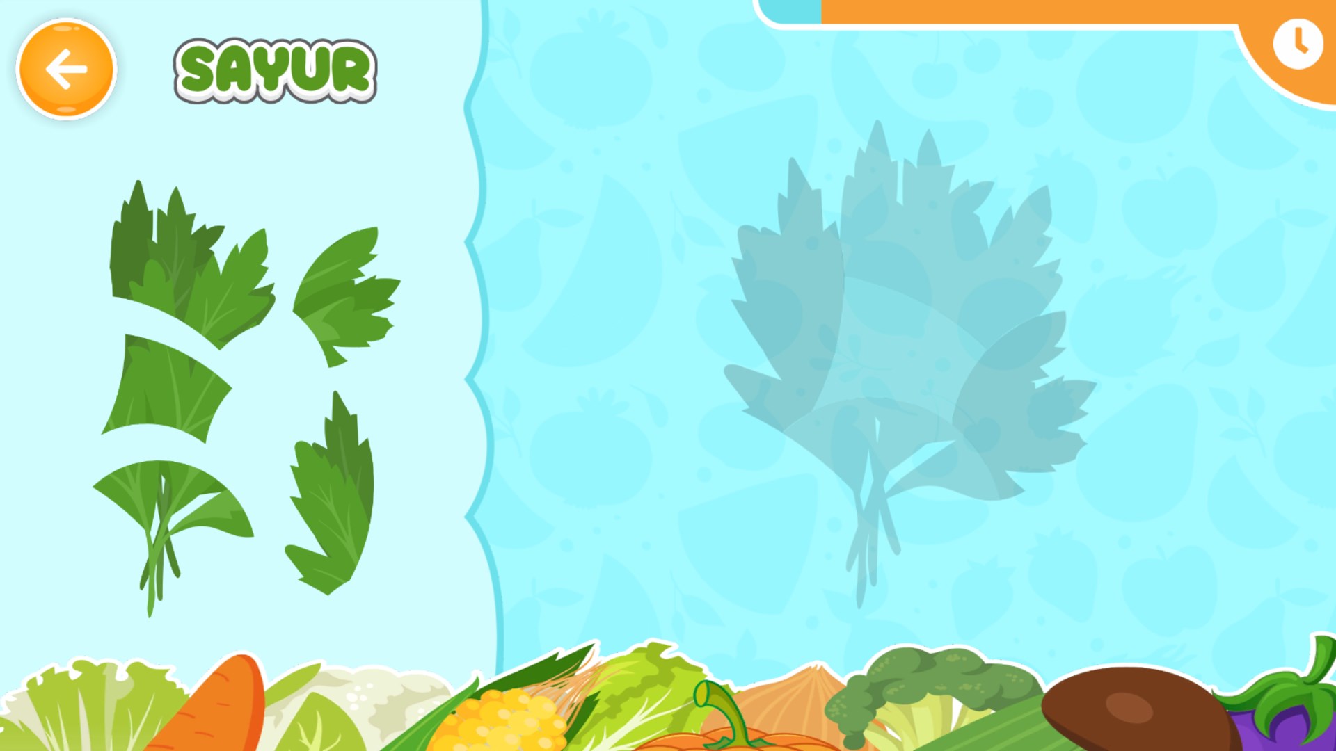 Buah dan Sayur - Mengenal Buah dan Sayur dengan Permainan Puzzle | Aplikasi ini merupakan Game Edukasi untuk belajar mengenal macam-macam buah dan sayur, terdapat 30 jenis jenis buah dan 30 jenis sayur, yang tentunya juga dijadikan sebuah permainan puzzle dan dibagi menjadi 30 level pada tiap kategori (30 level puzzle buah & 30 level puzzle sayur). Permainan disajikan dalam bentuk permainan puzzle pecahan buah/sayur dan disertai suara sehingga lebih menarik.