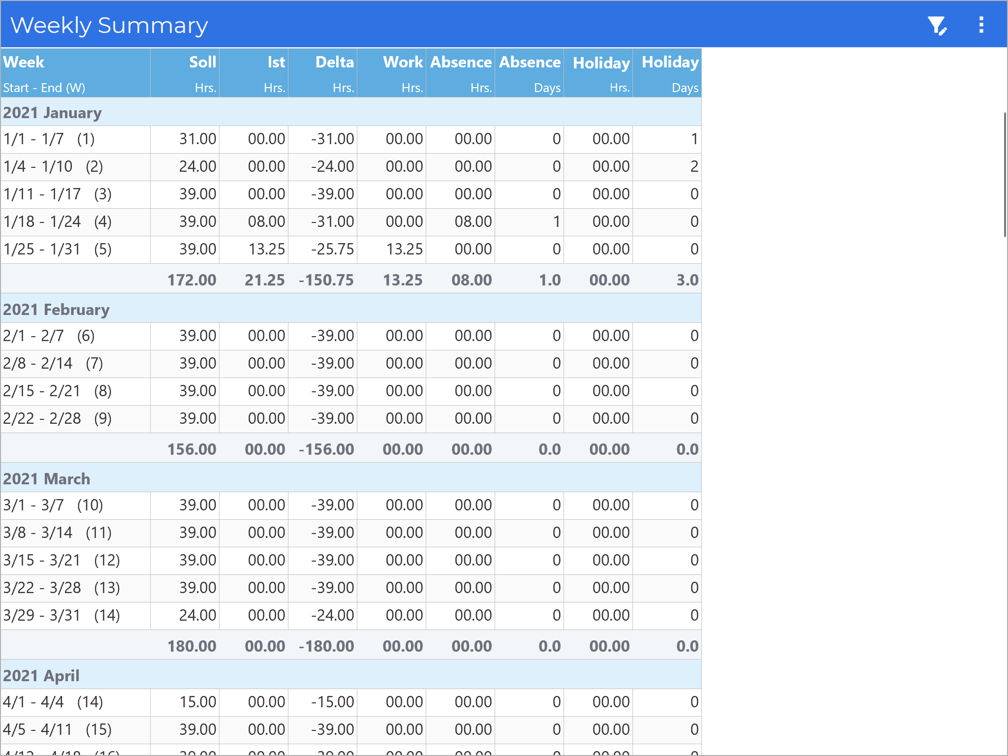 - Different overviews for a day, week, month and year