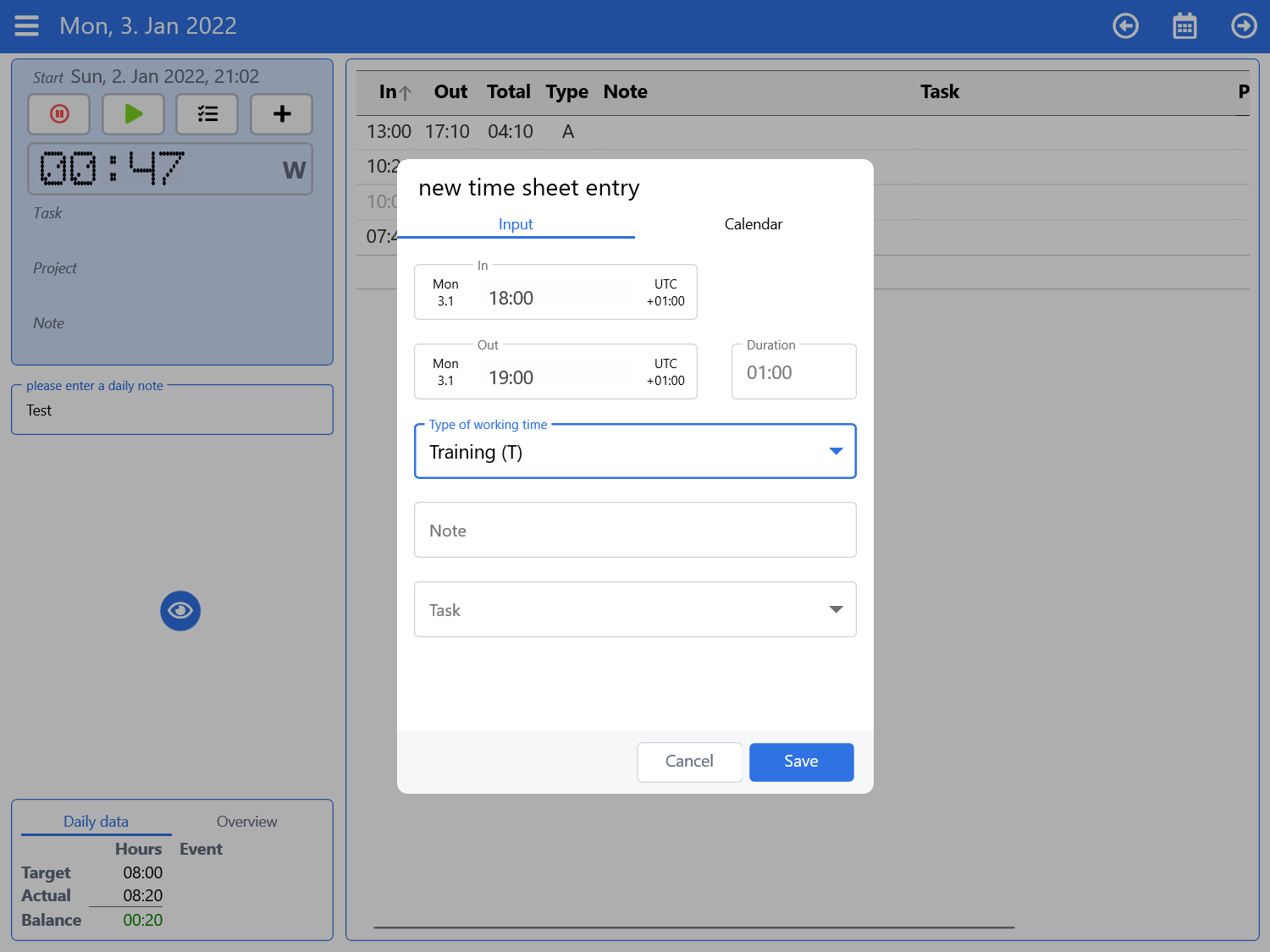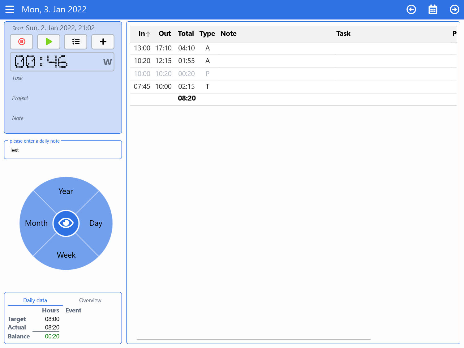 - Calculation of the daily balance in the stopwatch now shows the time of the current day