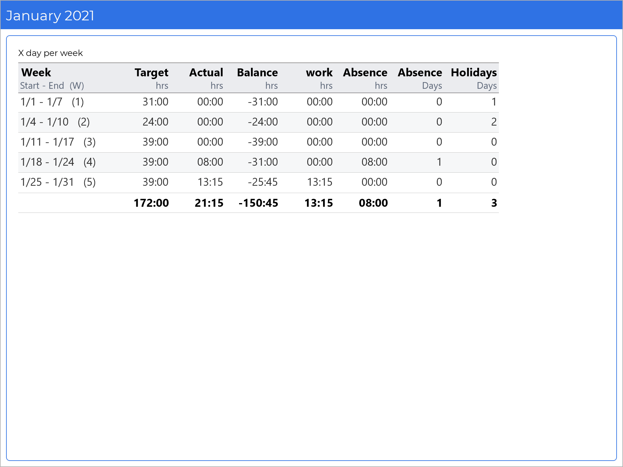 1. X days a week with target hours for each day
