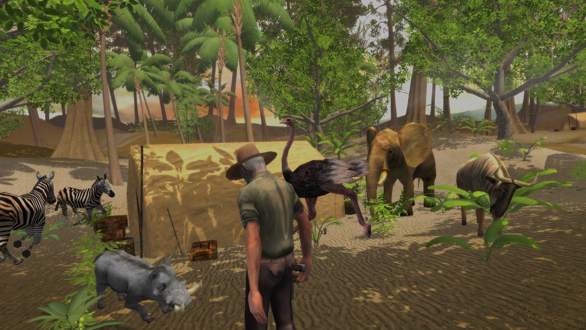 * High quality graphics and gameplay.* All Unlocked Version: All Weapons/Vehicles/Animals are ready to use and play.* Rhino, Elephant, Lion, Zebra, Giraffe, Lioness, Reedbuck, Buffalo, Wildebeest, Flamingo, Lemur, Bee\'s, Crocodile, Piranha, WartHog, Monkey, Ostrich, Meerkat, Snake and Scarabs.* 4x4 Jeep, Motorbike, Horse or explore by foot.* Collect and build up your weapons: Handgun/Rifle/Pistol Crossbow(Explosive Arrows)/Compound Bow/Proximity Mines/Gas Canisters.* High quality graphics and gameplay.* Hunt during Night/Day/Rain, build a camp fire and experience thrilling hunting action in the scary dark.