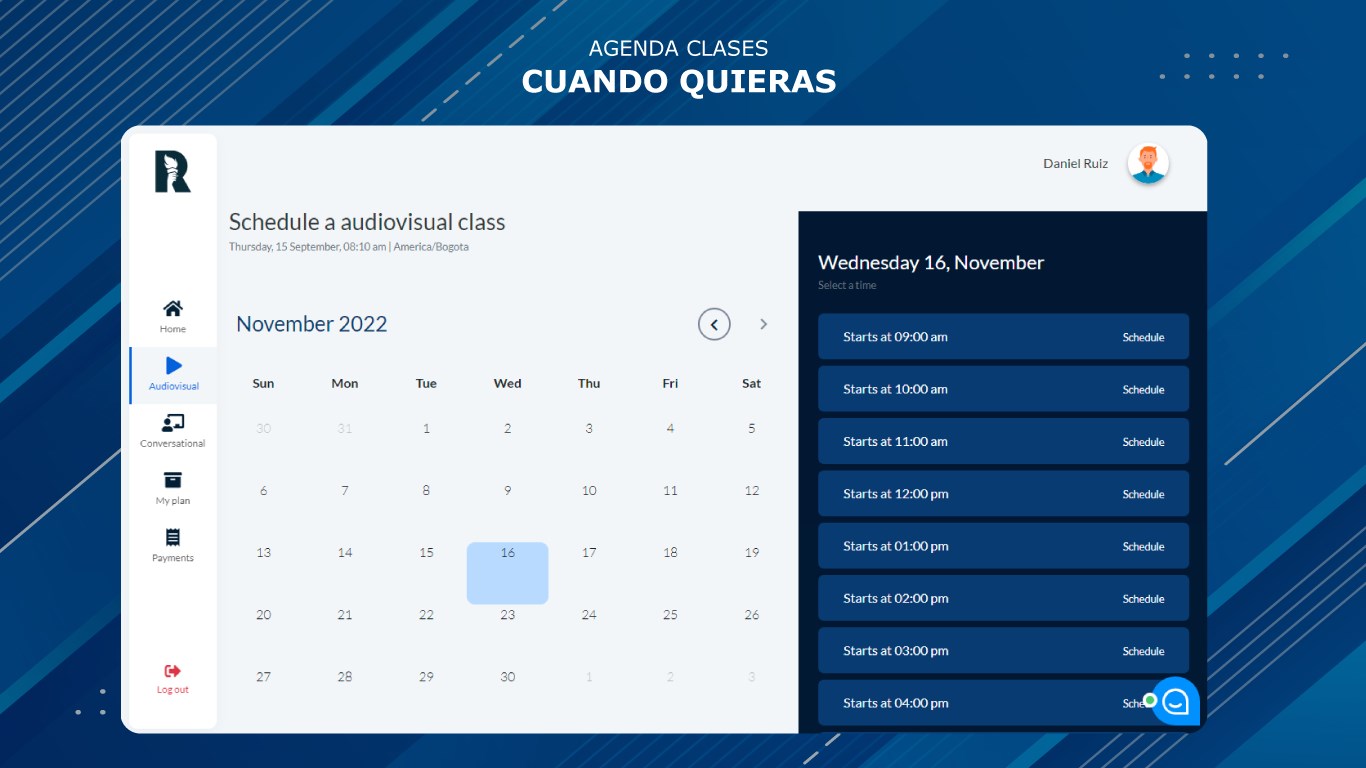 Nuestro programa tiene todas las adecuaciones tecnológicas y flexibilidad horaria para entregarte una experiencia enfocada en resultados que se ven inmediatamente reflejados en tus habilidades comunicativas en inglés.