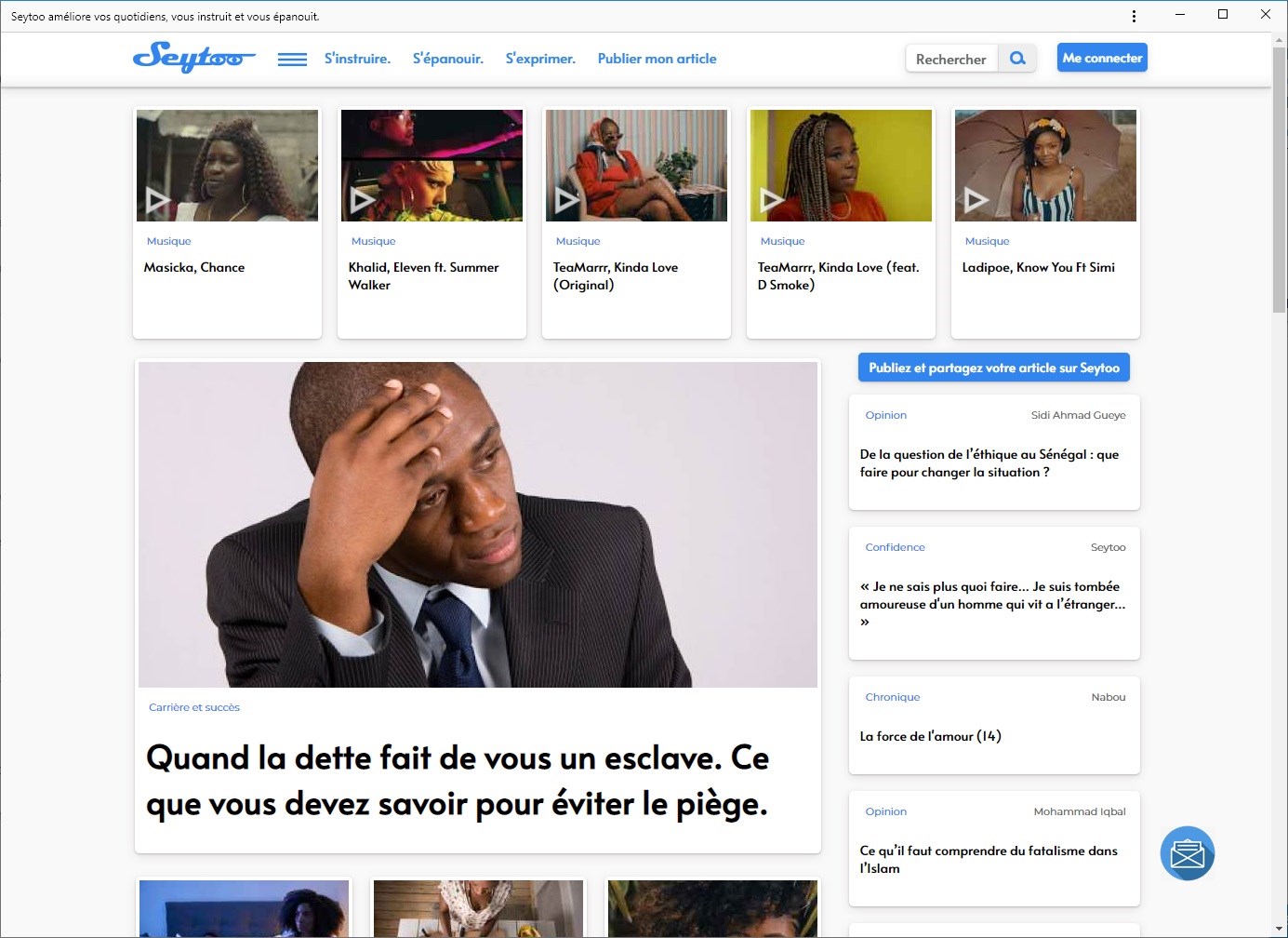 SEYTOO.COM a été créé pour améliorer vos quotidiens. Le magazine en ligne Seytoo offre des conseils et analyses, des articles et vidéos qui se focalisent sur la vie professionnelle, le succès, l\’amour, la vie de couple, la vie familiale, la société, la vie personnelle, la sexualité, l\’art de vivre, la santé, le bien-être, la cuisine et la gastronomie. Seytoo offre aussi à ses lecteurs des solutions leur permettant de s\'exprimer en partageant leurs chroniques, opinions et confidences, mais aussi de former des relations entre eux.