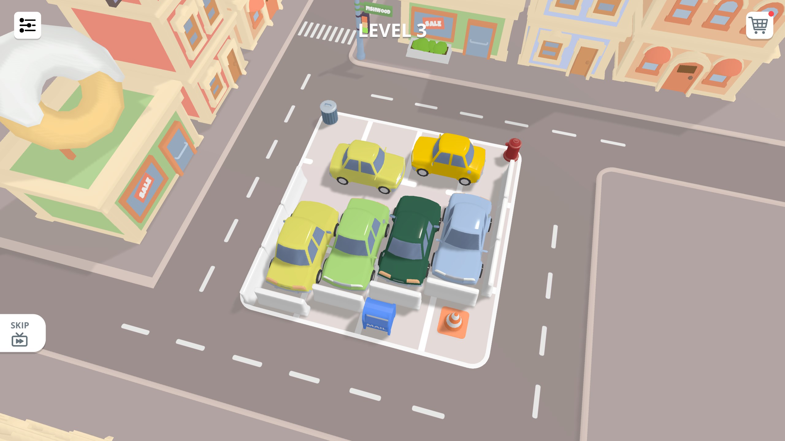 During the rush hour there are too many cars in the parking area. Your task is to unblock the car and move it out of the traffic chaos.