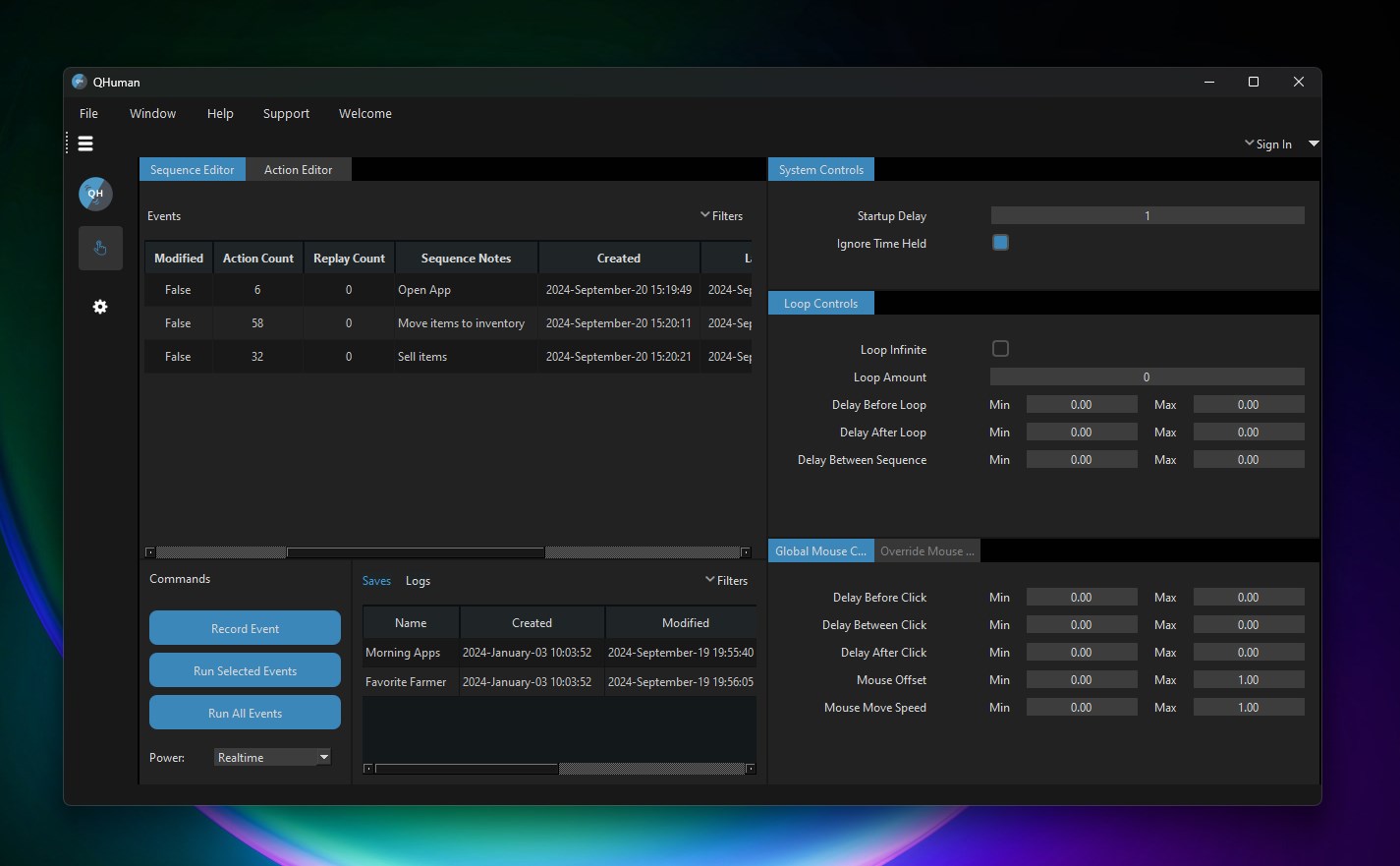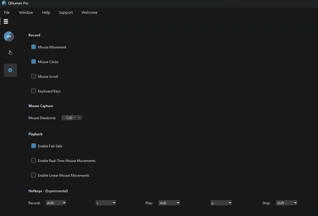 Introducing QHuman—a straightforward automation tool for repetitive tasks. Record and replay mouse movements, clicks, scrolls, keyboard inputs, and now detect images and pixels on-screen. Adjust speeds, add randomness, and set precise durations for natural, human-like actions.