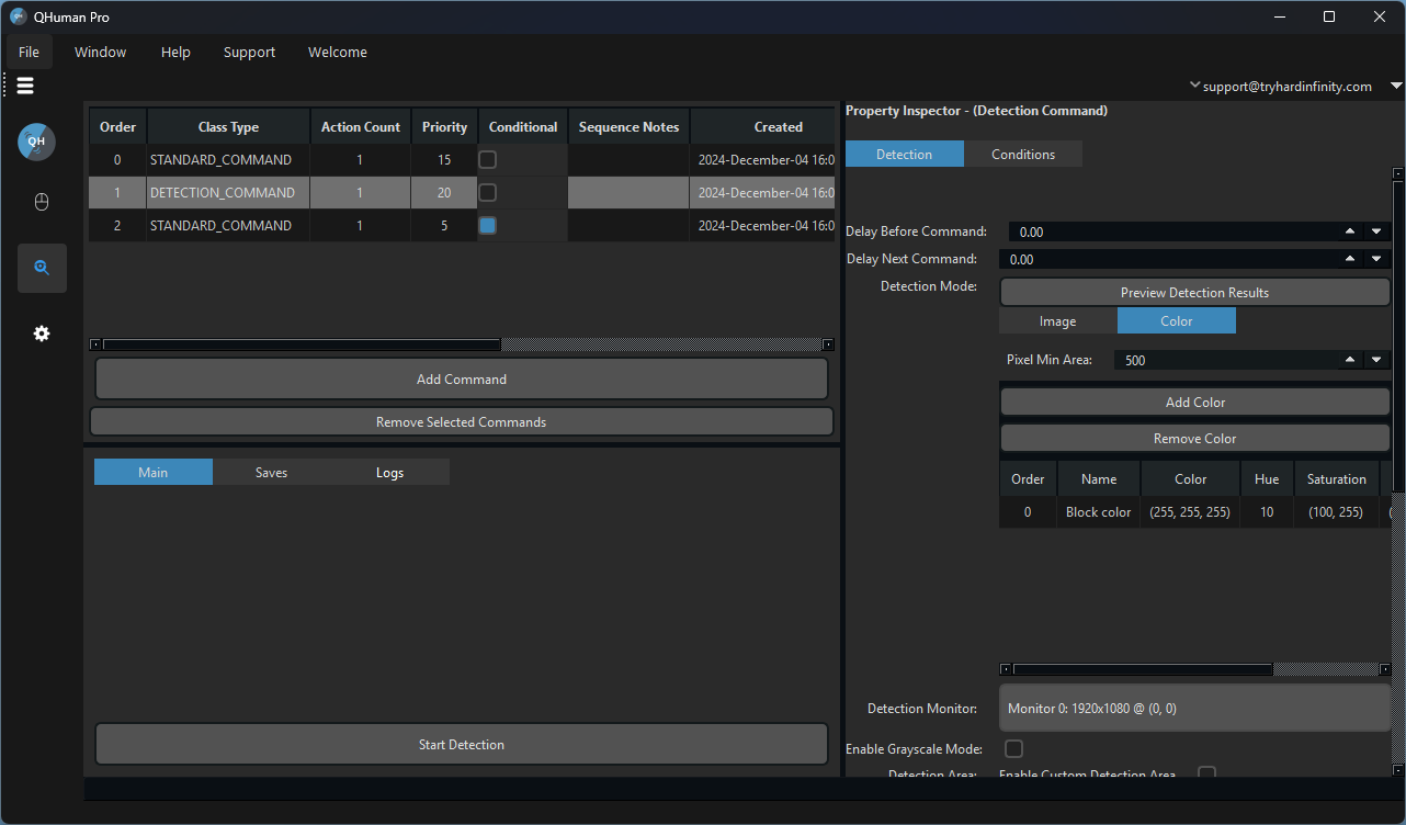 Image & Pixel Detection for on-screen object-based automation (Pro)Record all input types: mouse clicks, movements, scrolls, and keyboard inputsDirect Input mode for seamless gaming automation (Pro)Position and Duration Editors for precise timing and controlAdd randomness, offset, and delay to actions for natural workflowsMultiple mouse movement styles: real-time or linear transitionsLoop sequences infinitely or set predefined countsSave and rename sequences for easy organizationAssign custom names to individual actionsCollapsible sections for streamlined UI navigationRun multiple operations in sequential orderPower management modes to optimize performanceComprehensive logging system for tracking actionsSort and filter sequences by name, date, or typeCustomize hotkeys for recording, playing, and stopping (Pro)Control the speed of automationSet the maximum number of clicksConditional commands triggered by detection results (Pro)Monitor selection and custom capture regions for detection (Pro)Grayscale mode and adjustable match confidence for refined detection