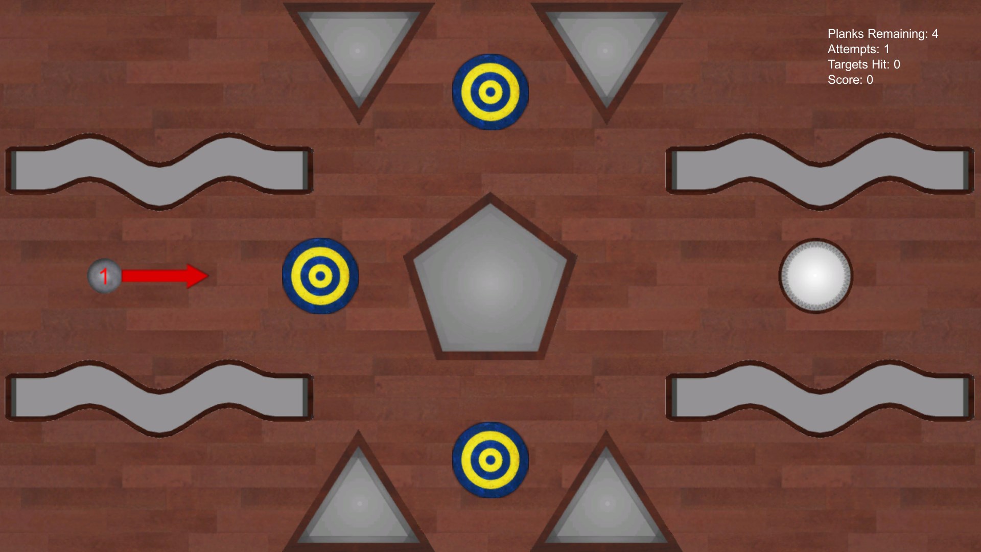 Ricochet is a physics-based puzzle game offering 50 challenging levels for you to complete. Place a limited number of planks to guide the ball to the finish point. Collect targets along the way to help boost your score. Collecting all the targets in a level will increase your score even further.