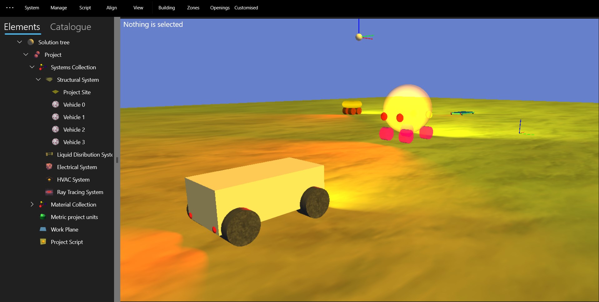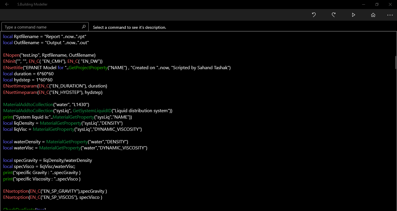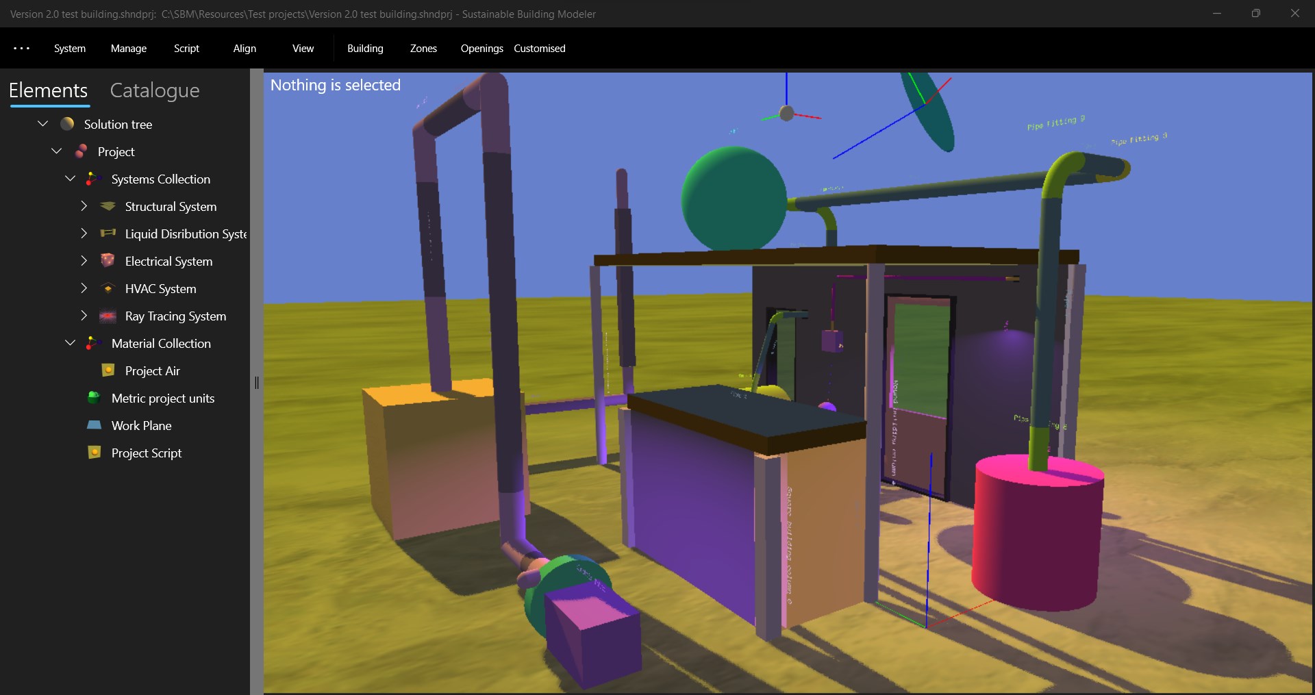 Design structural elements: Create floors, columns, walls, windows, and doors effortlessly for your sustainable building model.Design process components: Model pipes, tanks, valves, pumps, and flanges to optimize industrial processes.Design electrical appliances: Efficiently include lights, wires, cables, and conduits in your building\'s electrical design.Design HVAC appliances: Incorporate air conduits and fans for a well-ventilated and energy-efficient environment.Cost estimation: Accurately estimate project costs to stay within budget constraints.Bill of material: Keep track of all required materials with a detailed and organized bill of materials.Built-in material library: Access a collection of materials to enhance your designs.Scripting capabilities: Write custom scripts for calculations, analysis, and detailed reporting.Map view integration: Visualize and input location-specific data directly from the map view.Offline work and local saving: Seamlessly work offline and save and load projects locally for convenience.Hydraulic and quality analysis: Use EPANET toolkit functions to analyze hydraulic and water quality aspects of your model.Programmatically create models: Generate models programmatically using scripts for increased efficiency.DXF file conversion: Convert models to DXF files using custom scripts for compatibility with other software.Built-in catalog and custom catalogs: Access a diverse product catalog or create and load your custom catalogs.Project management tools: Stay organized and manage projects efficiently with built-in project management features.Modelica model generation: Generate Modelica models from your 3D designs seamlessly.Ray tracing tools: Utilize advanced ray tracing for accurate electromagnetic wave propagation simulation.Model dynamic elements and vehicles: Incorporate dynamic elements and vehicles into your sustainable building design.API reference guide: Access a comprehensive API reference guide for seamless integration and customization.Tutorials and samples: Learn and explore software capabilities with detailed tutorials and script samples.