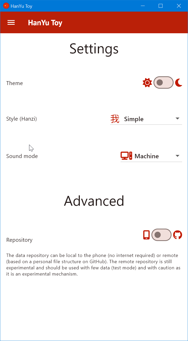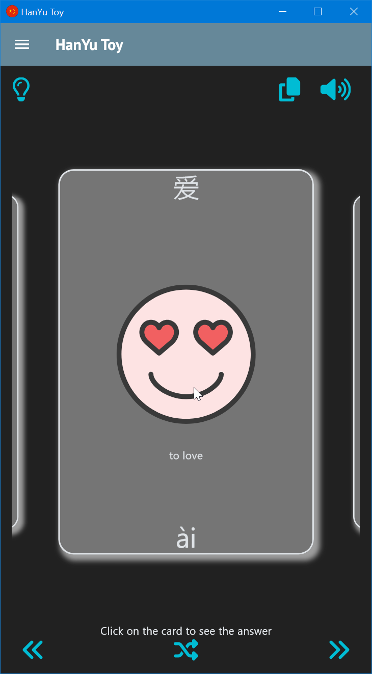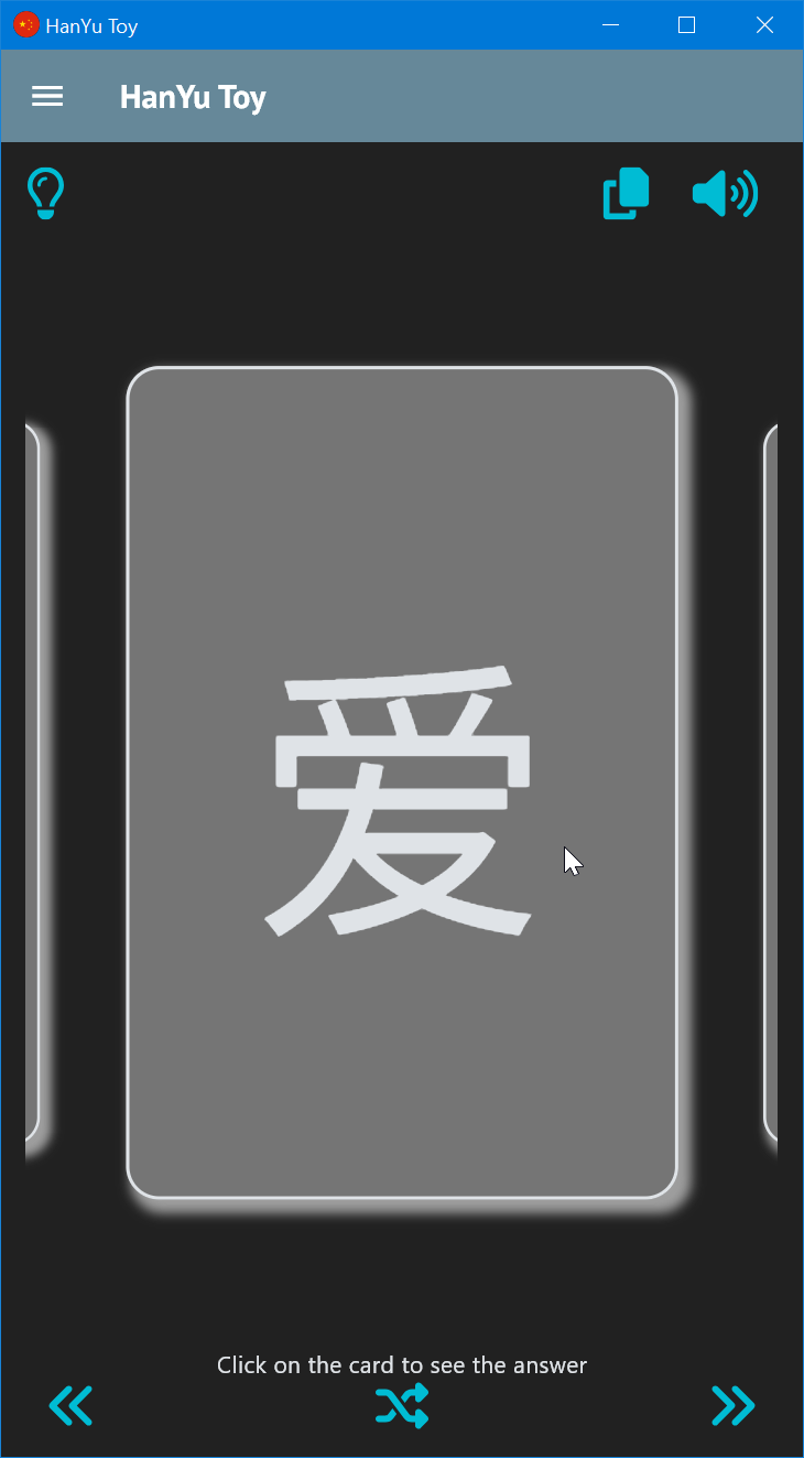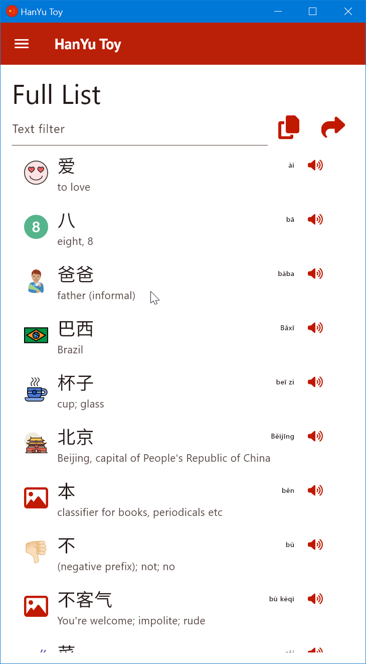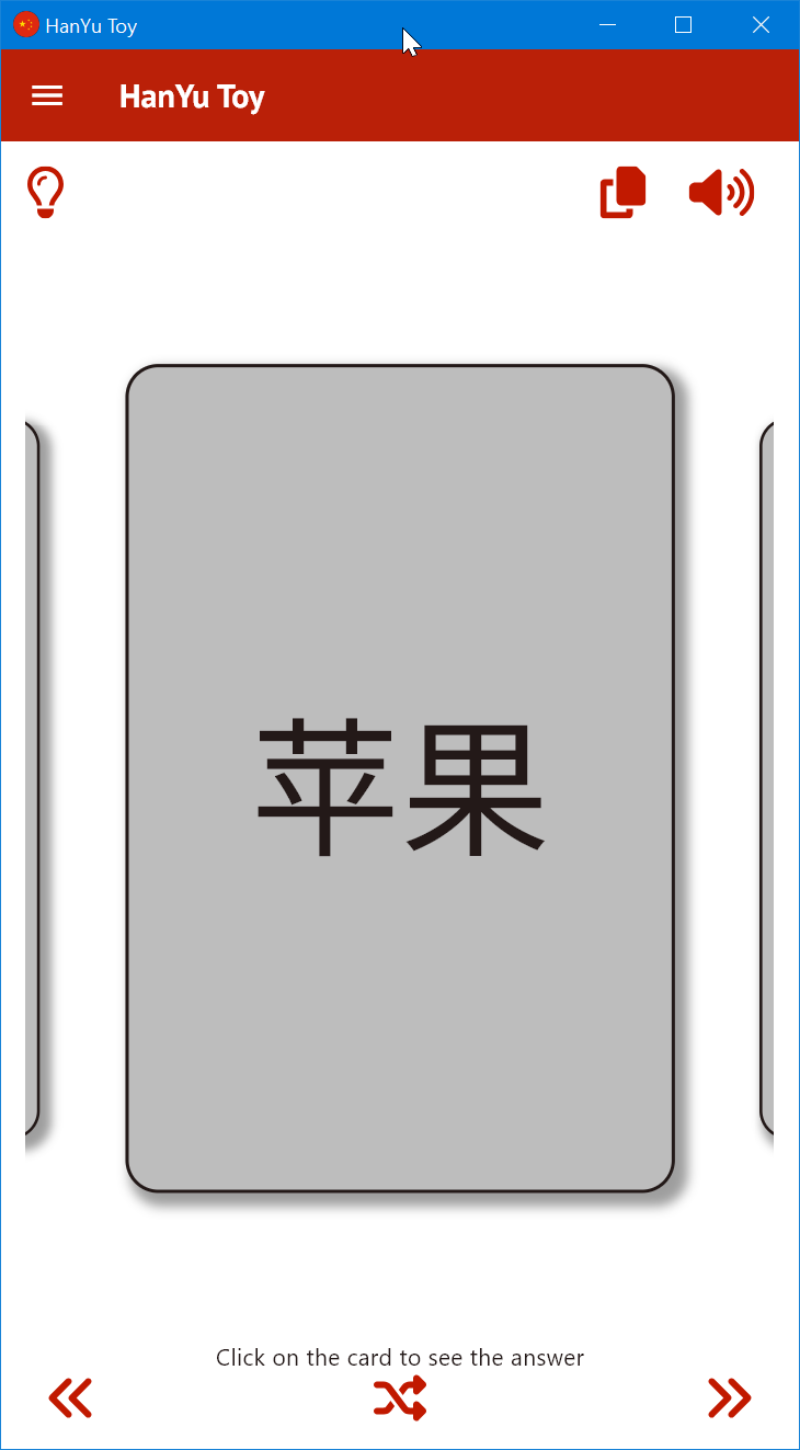 This is a simple app for daily Chinese language training. Without pretensions, it offers a simple interface for daily study of the simplest words (HSK 1 level).