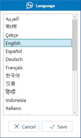 UI text in English, French, Spanish, Chinese, Korean and many more. User can create multiple command lists and terminator sets for messaging.