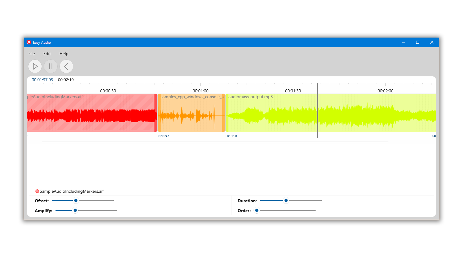 Easy Audio editor offers a seamless way to tweak audio files in just a few clicks. Its intuitive interface allows you to easily conduct operations like splitting, merging, cutting, amplifying, and more with straightforward drag&drop actions. It's the perfect solution for swift and efficient audio file editing!