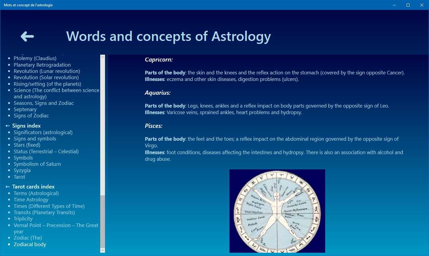 More than 200 words or concepts related to astrologyMore than 150 illustrations or graphicsHistory managment