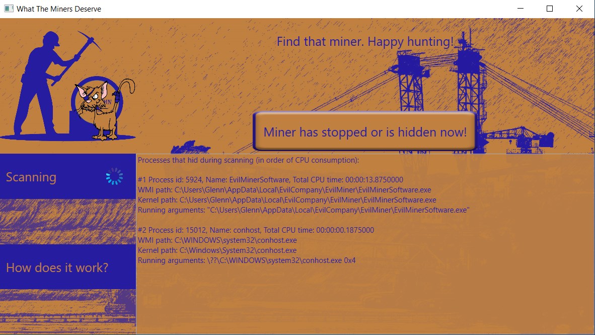 This application is a project that will try and help you discover if a miner or other software is parasitizing your system.
