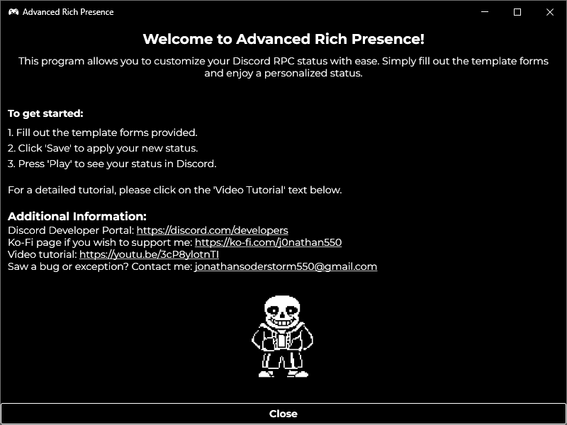 Advanced Rich Presence is an utility application that allows Discord users easily modify Discord Rich Presence status.