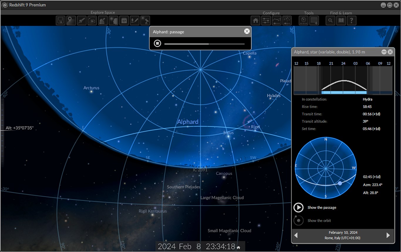 - Intuitive setting of the observation time and date for easy visualization of astronomical events that actually last days, months or years
